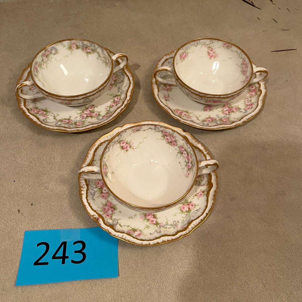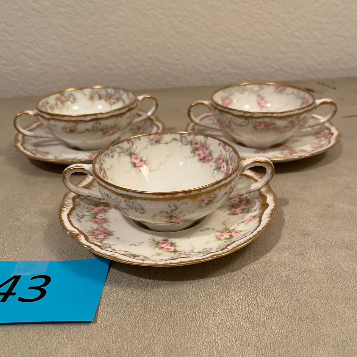 Lot of 3 Bouillon Soup Bowls w/ liners