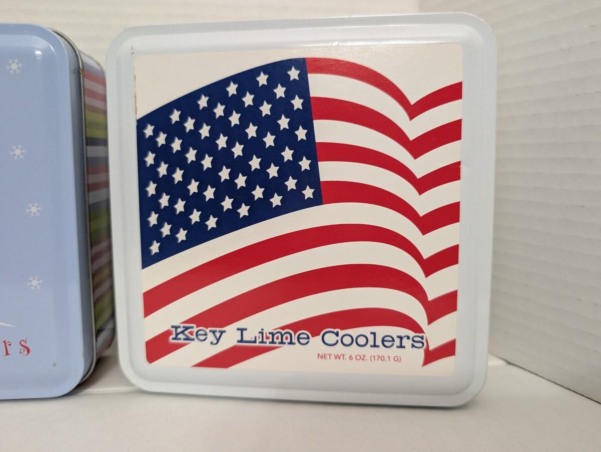 Byrd Cookie Company, Key Lime Coolers, collectible tins, cookie tins, chocolate key lime coolers, Savannah Georgia cookies, patriotic tin, holiday tin, flamingo tin, vintage style tins, kitchen collectibles