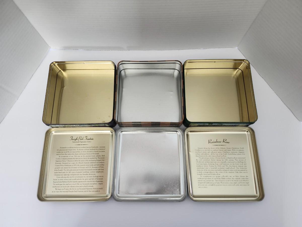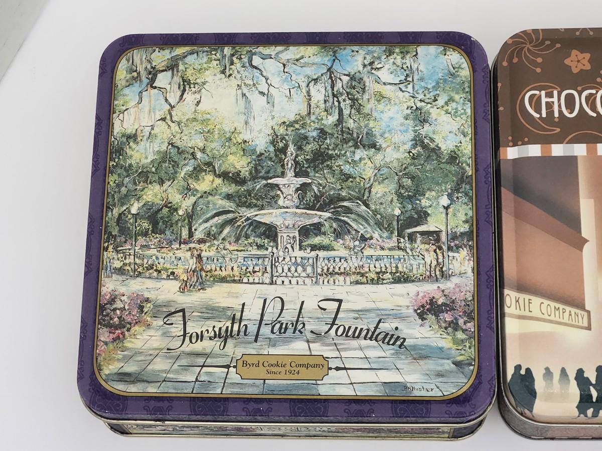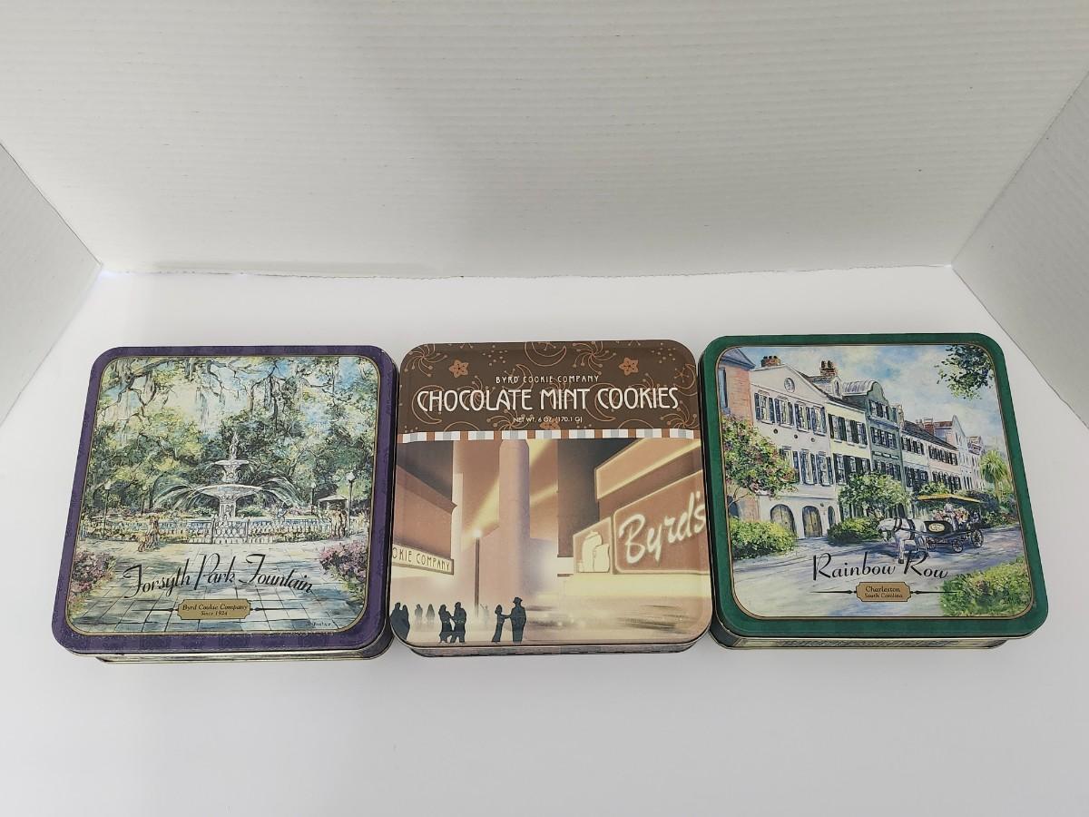Lot of 3 Byrd Cookie Company Collectible Vintage Tins Chocolate Mint Cookies Forsyth Park Fountain Rainbow Row