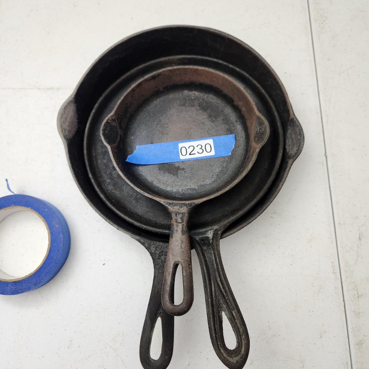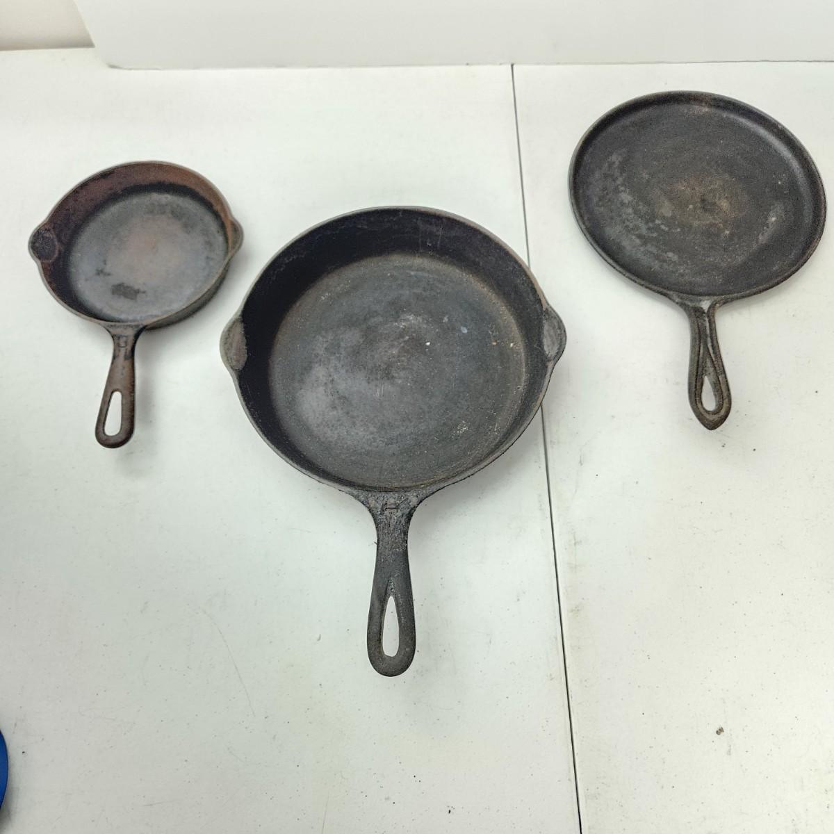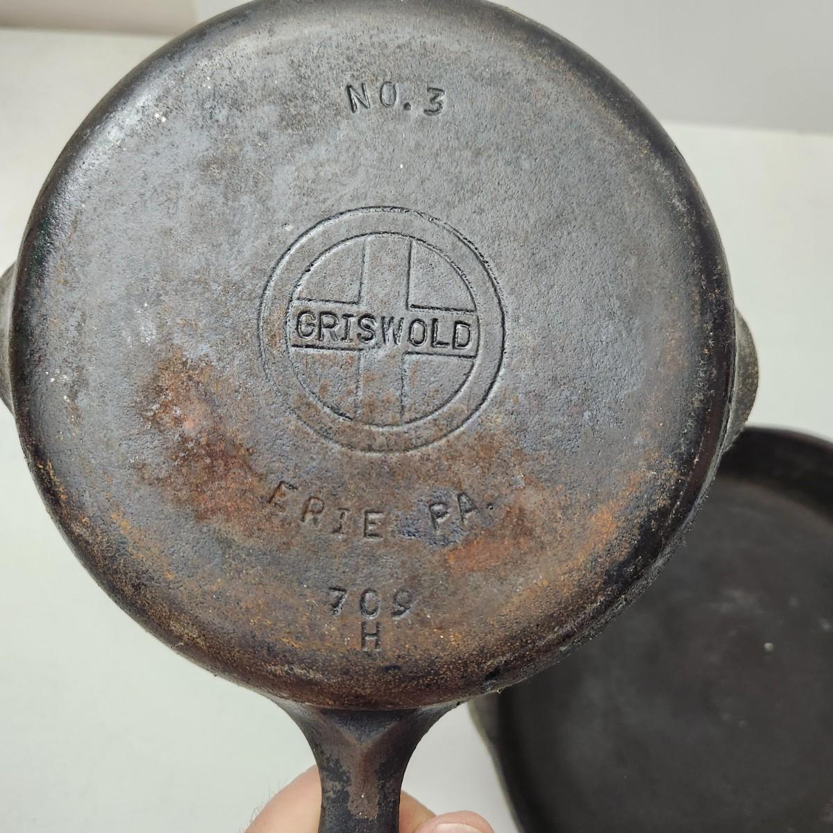 Lot of 3 Cast Iron 2 Griswold Pans 1 Round Griddle