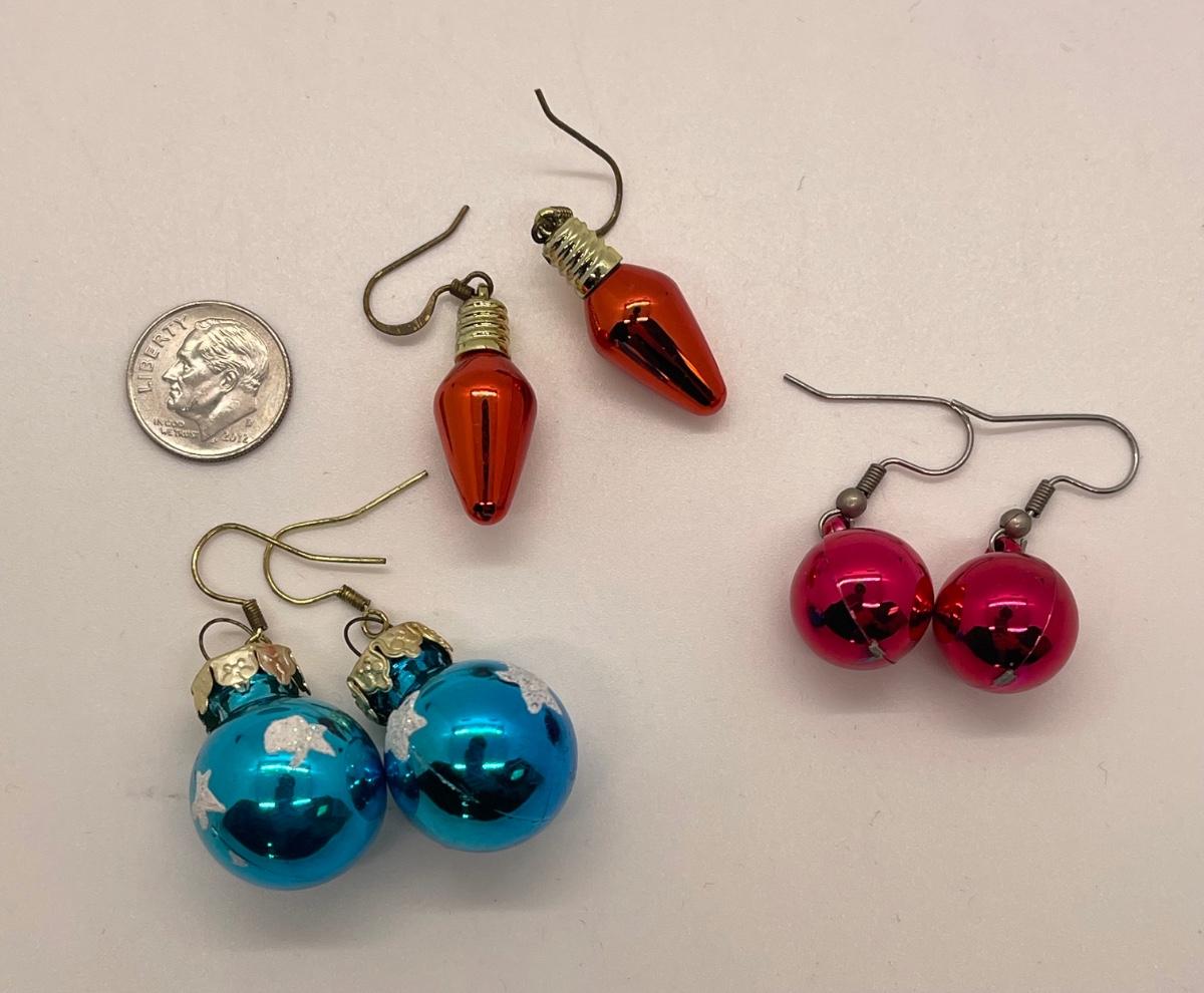 Lot of 3 Christmas Holiday Earrings Costume Fashion Jewelry