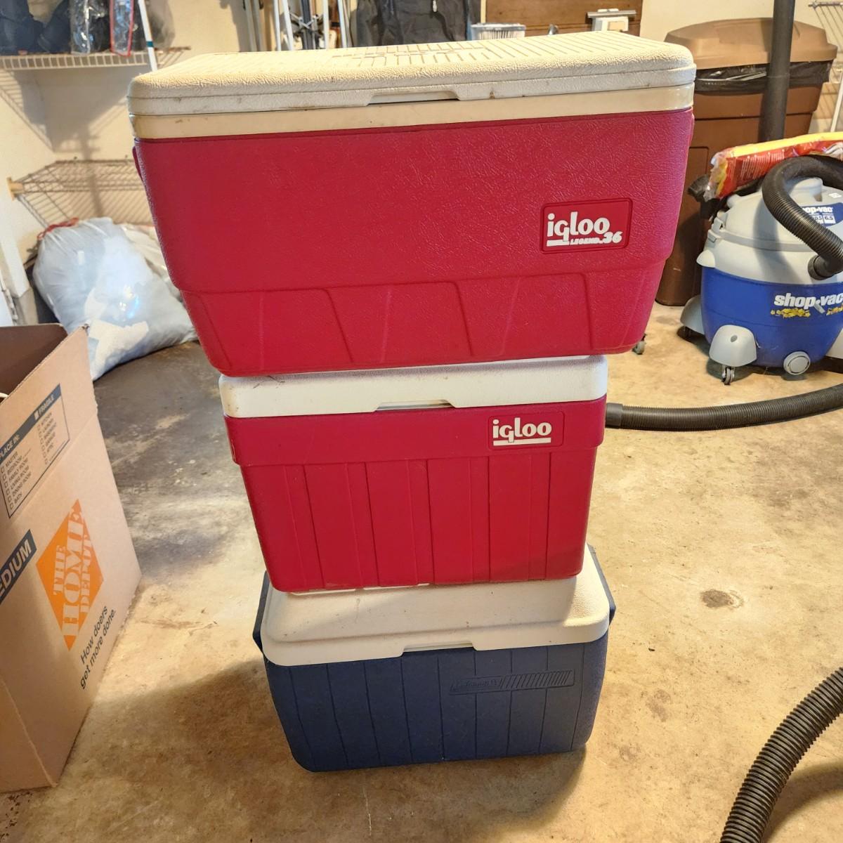 Lot of 3 Coolers 2 Igloo Coolers 1 Coleman