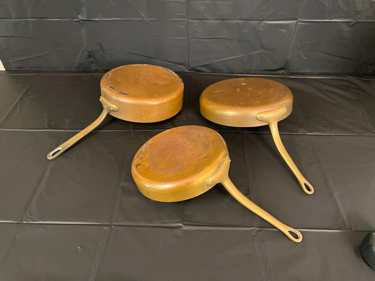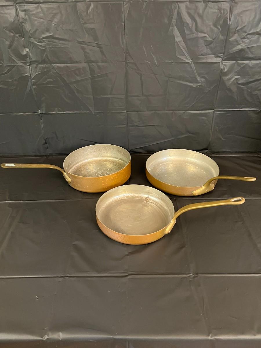 Lot of 3 Copper Pans with Brass Handles Made in France