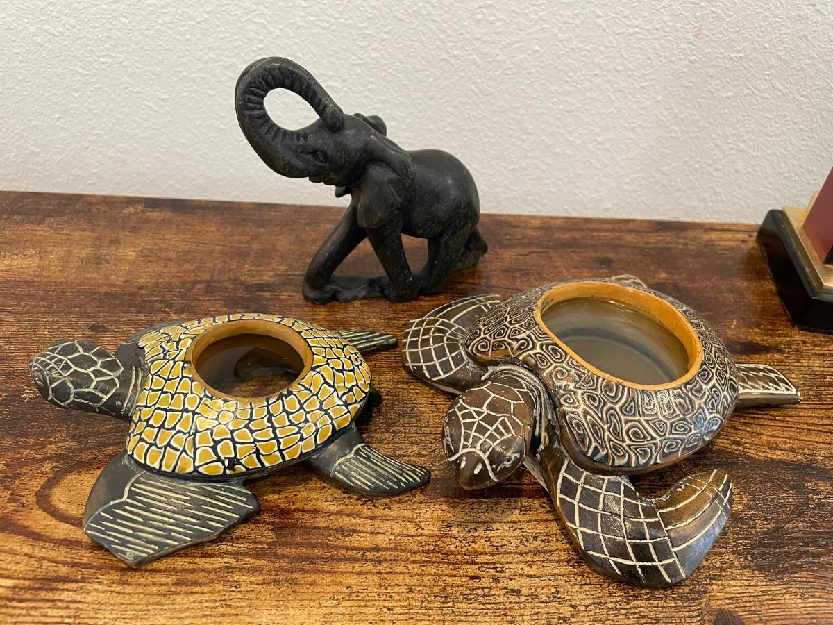 Lot of 3 decor items elephant turtle
