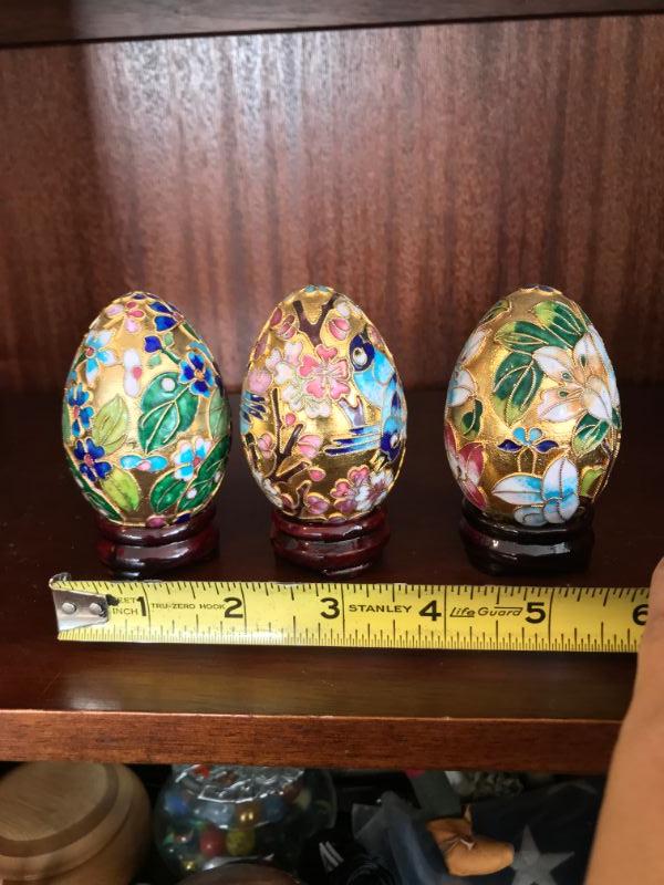 Lot of 3 Decorative Hand-Painted Eggs
