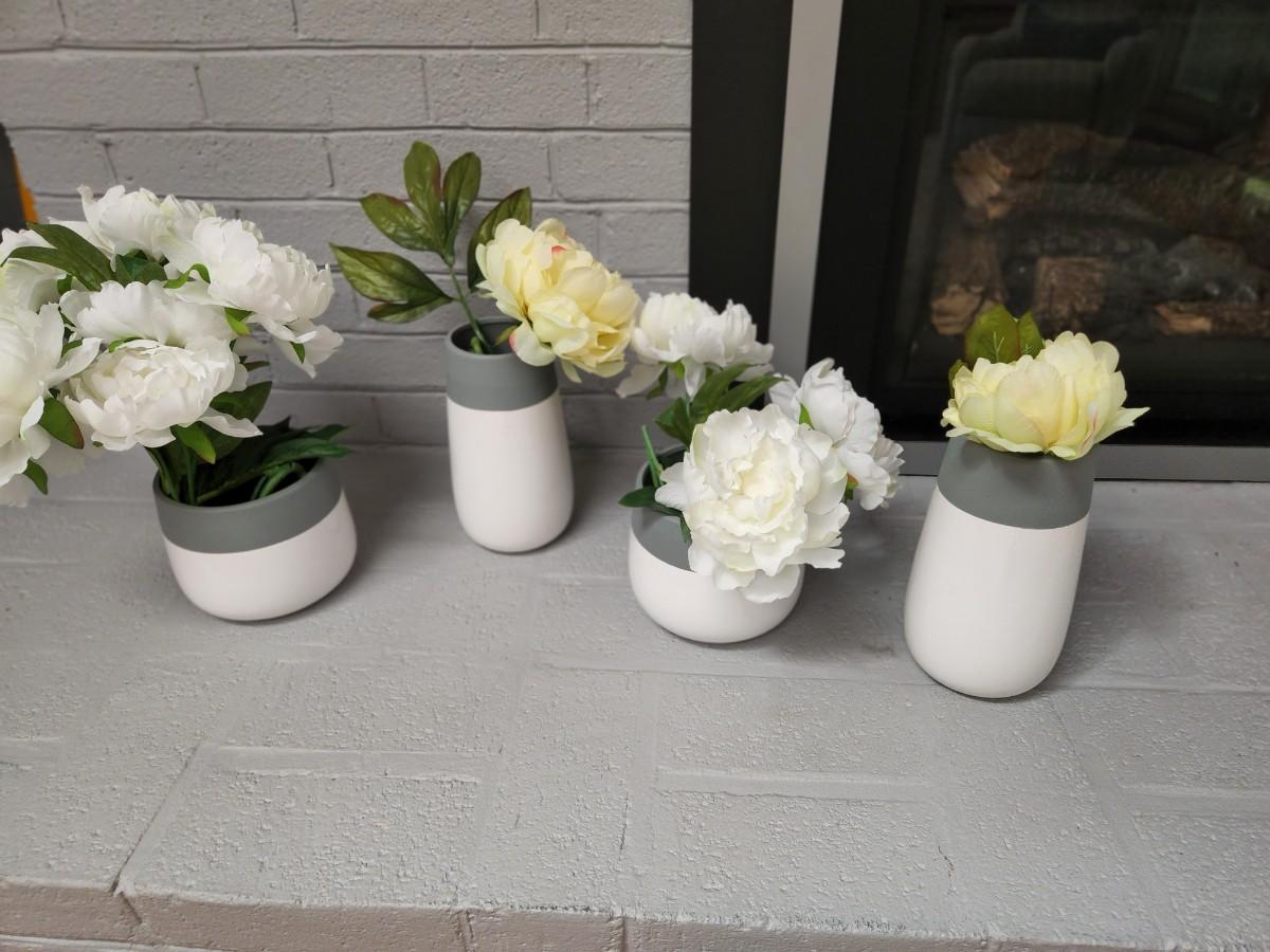 lot of 4 Ashland Summer Eye Ceramic Decorative Pots with Artificial Flowers