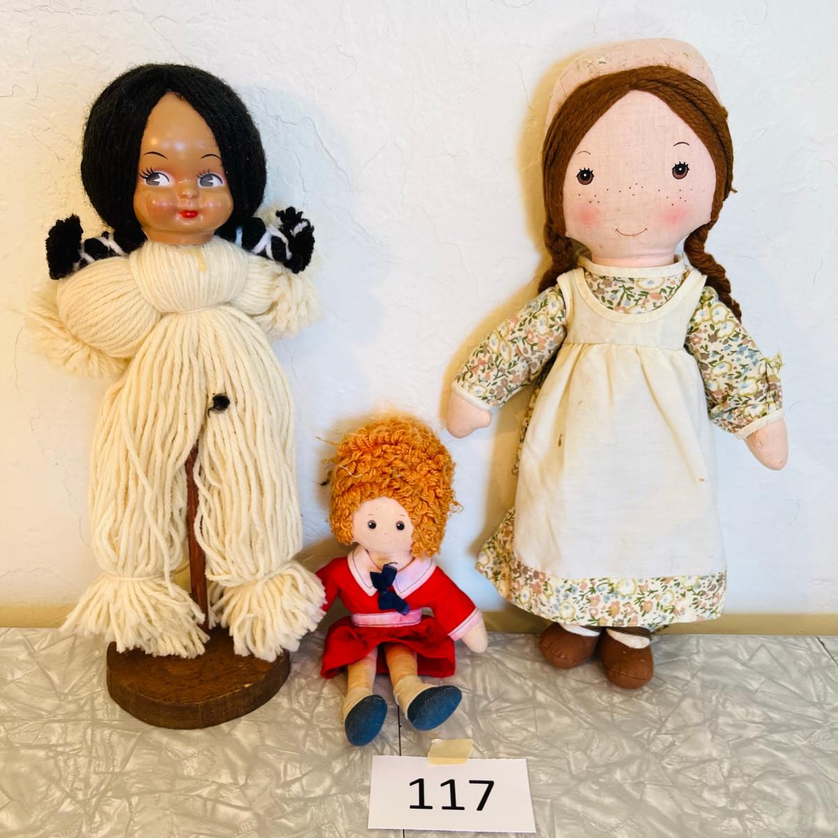 Lot of 3 Dolls, Indian Rag Doll Little Orphan Annie