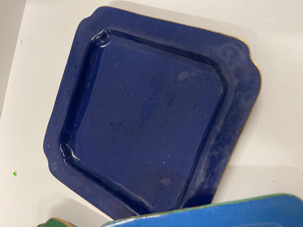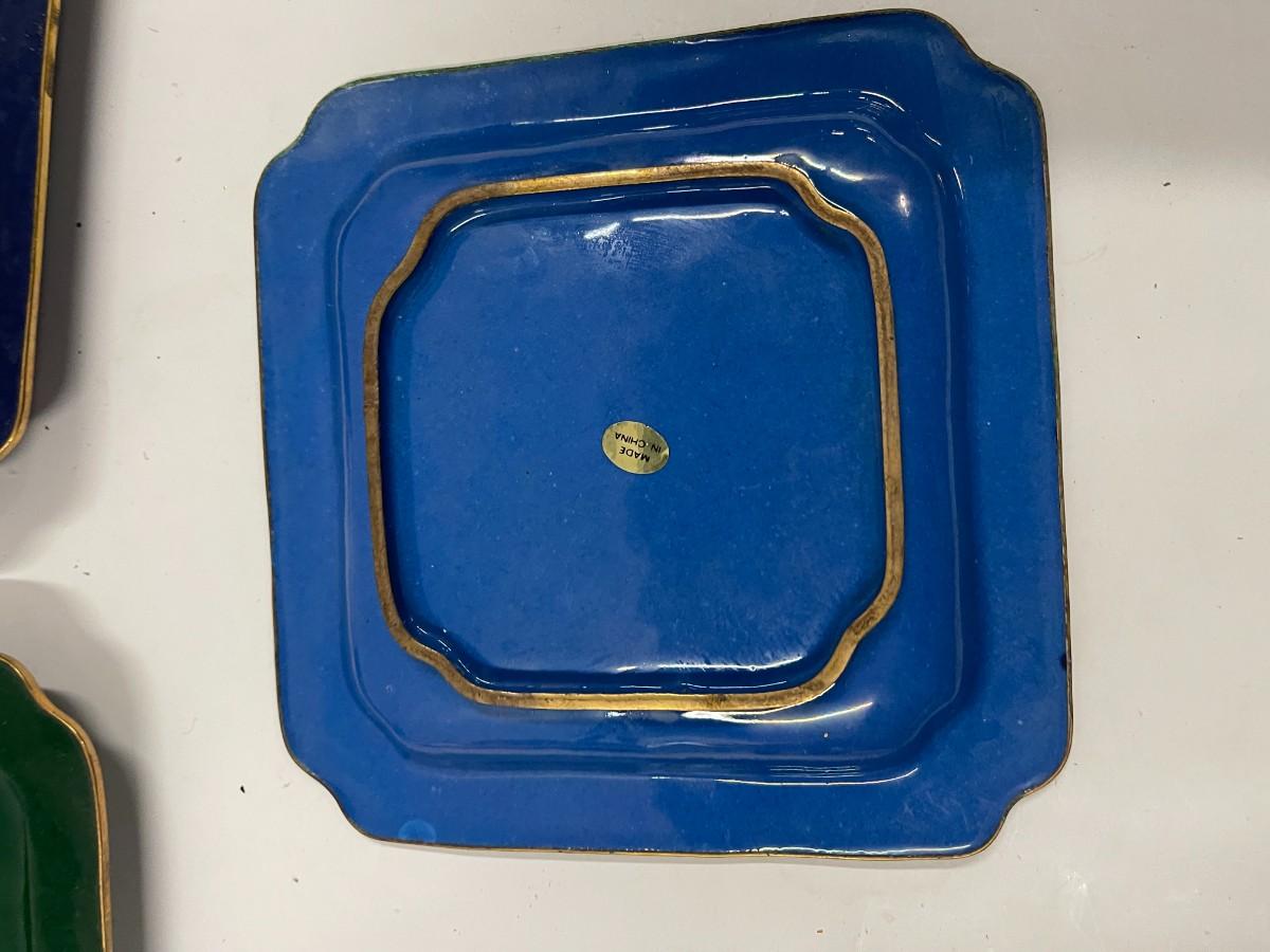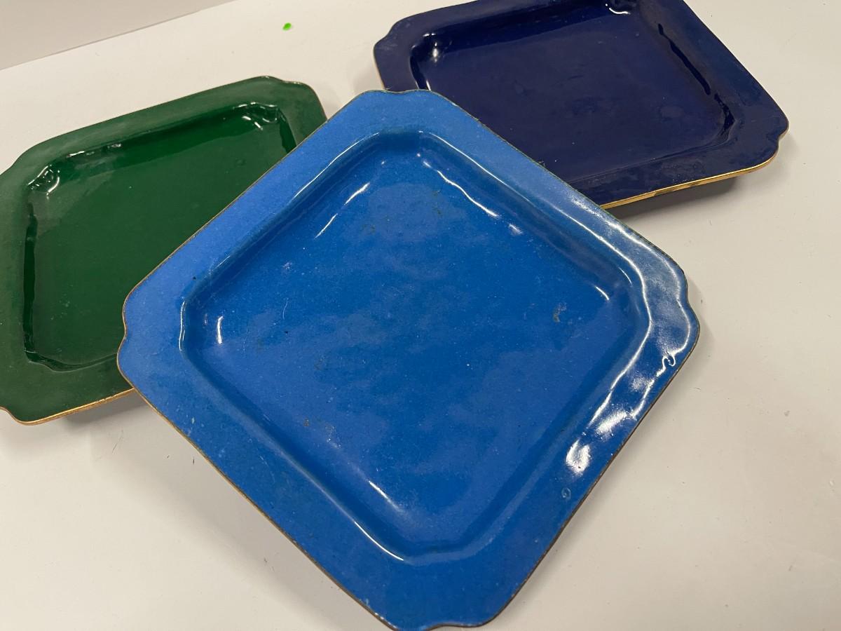 Lot of 3 assorted color enamel on metal plates, 6 1/2"