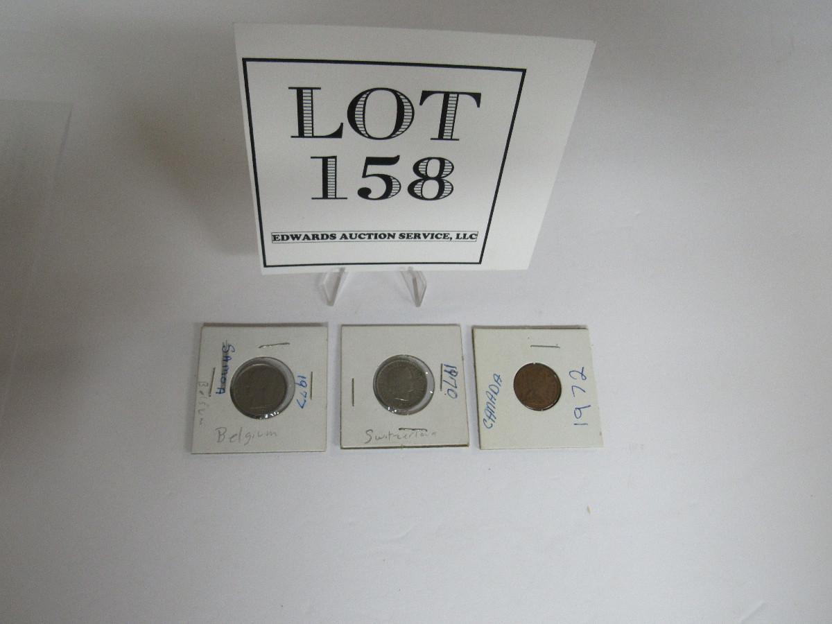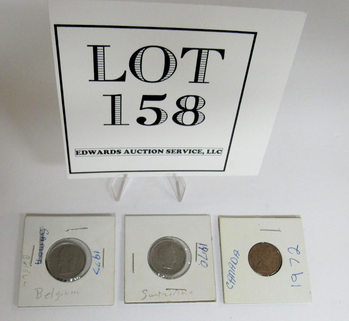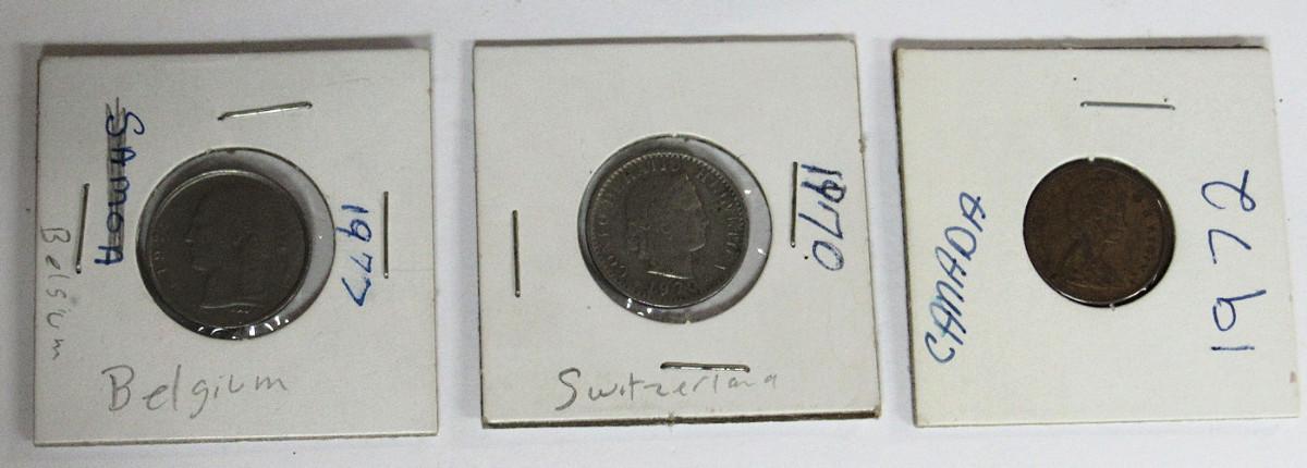 Lot of 3 Foreign Coins, Belgium, Canada, And Switzerland