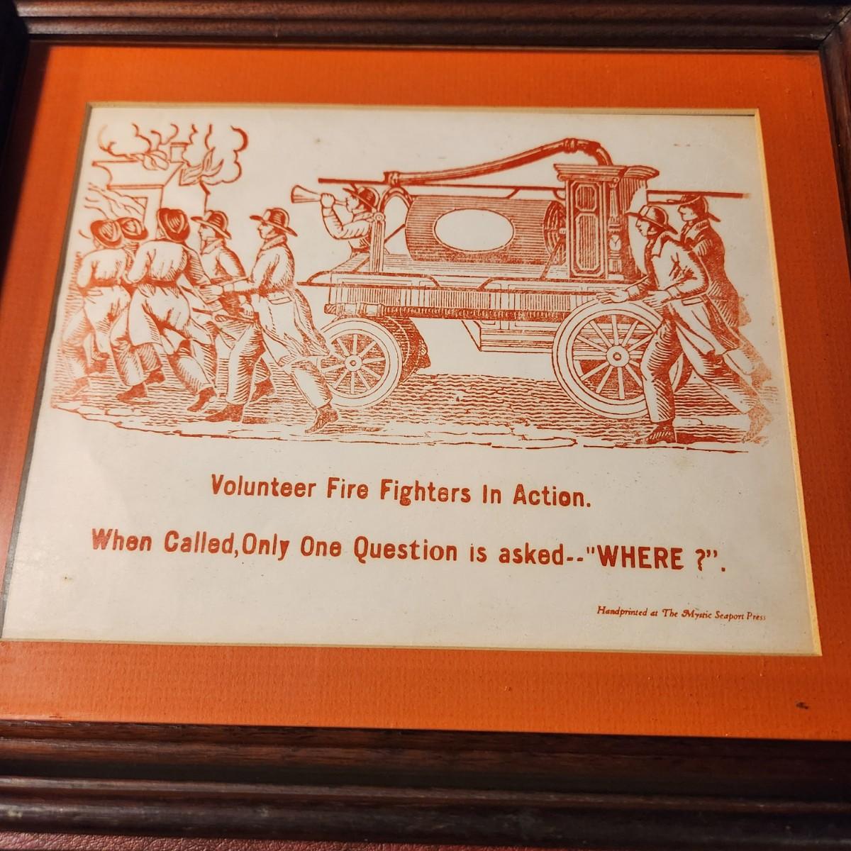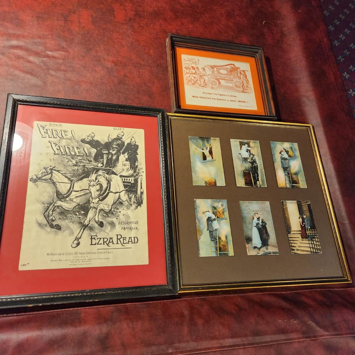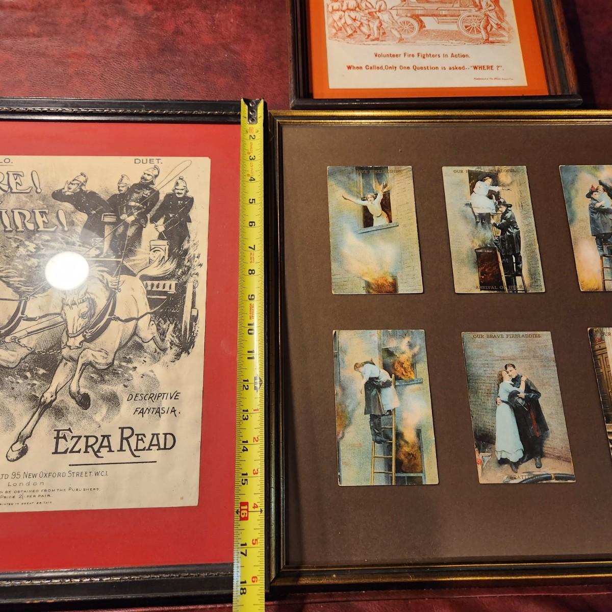 Lot of 3 Framed Fire Fighting Theme , Postcards, Fire Fire Sheet Music, Mystic Seaport press