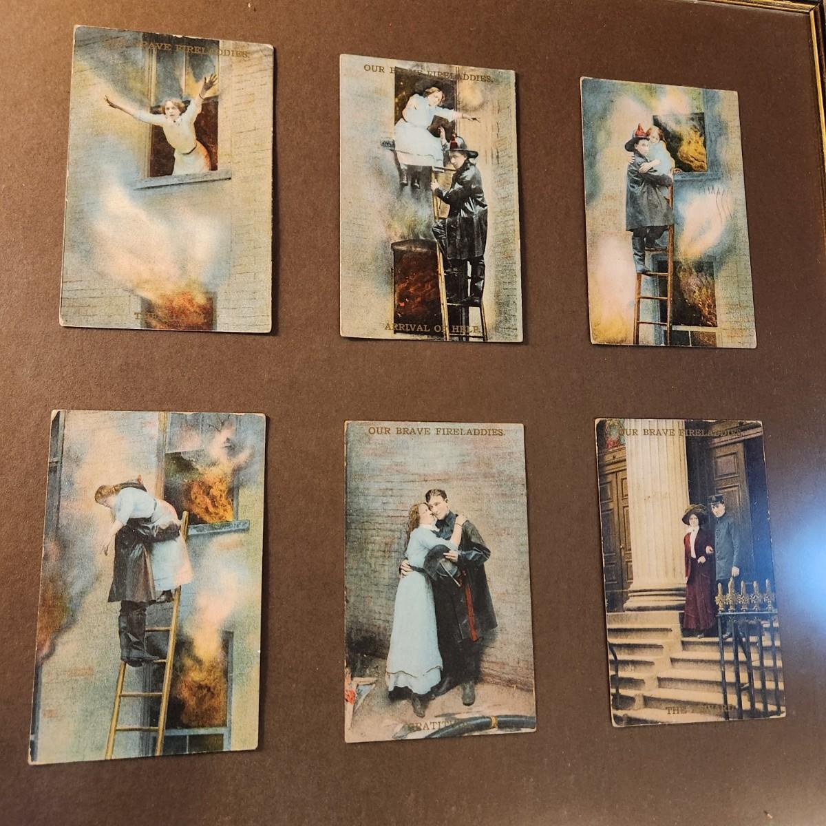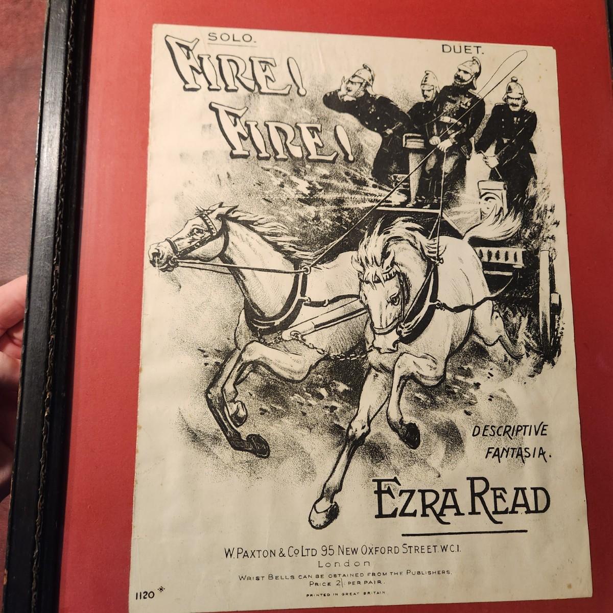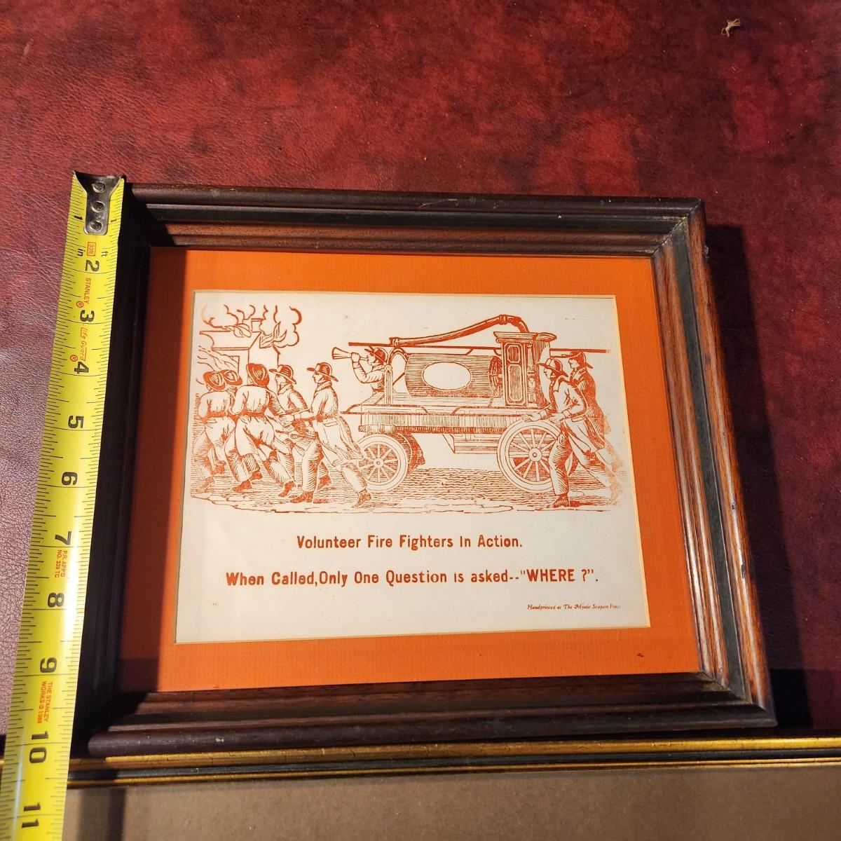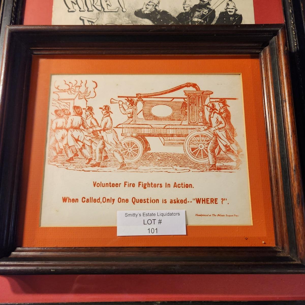 Lot of 3 Framed Fire Fighting Theme , Postcards, Fire Fire Sheet Music, Mystic Seaport press
