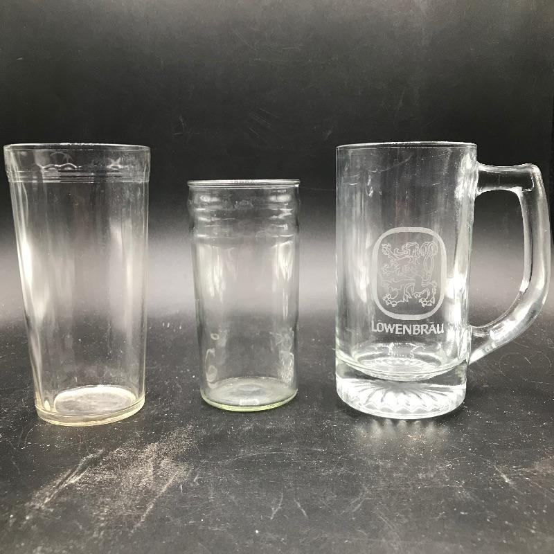 Lot of three assorted glass cups as pictured. All are in good condition.