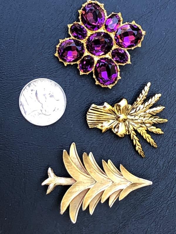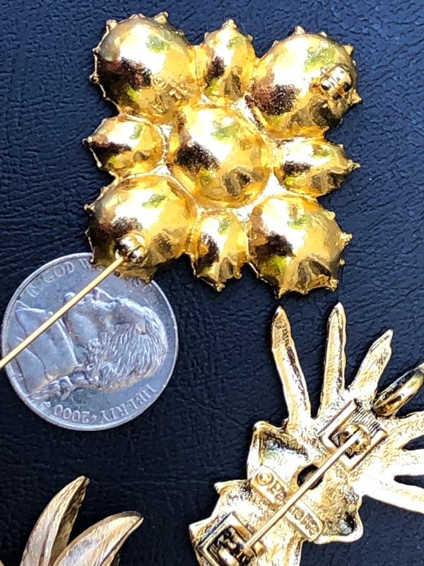 Lot of 3 Gold Tone Costume Jewelry Brooches Pins