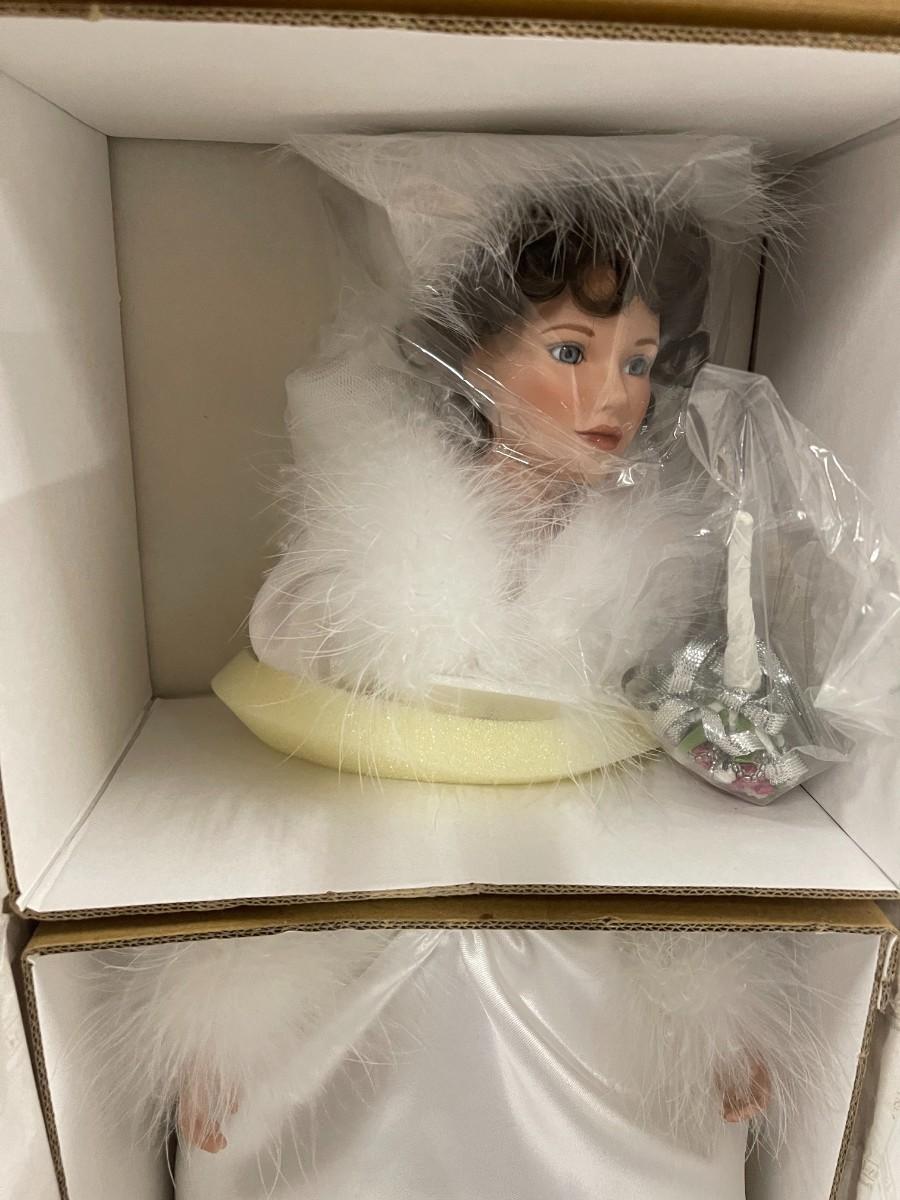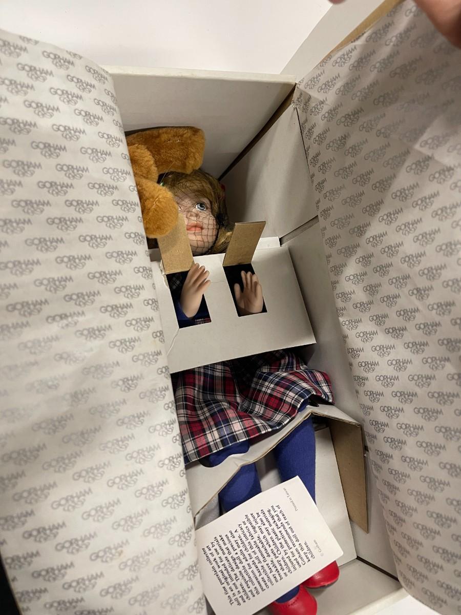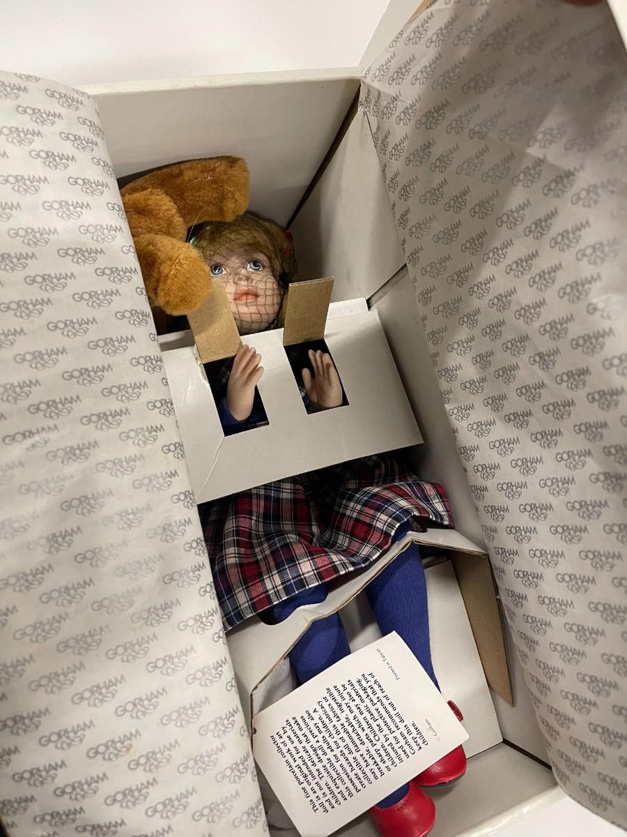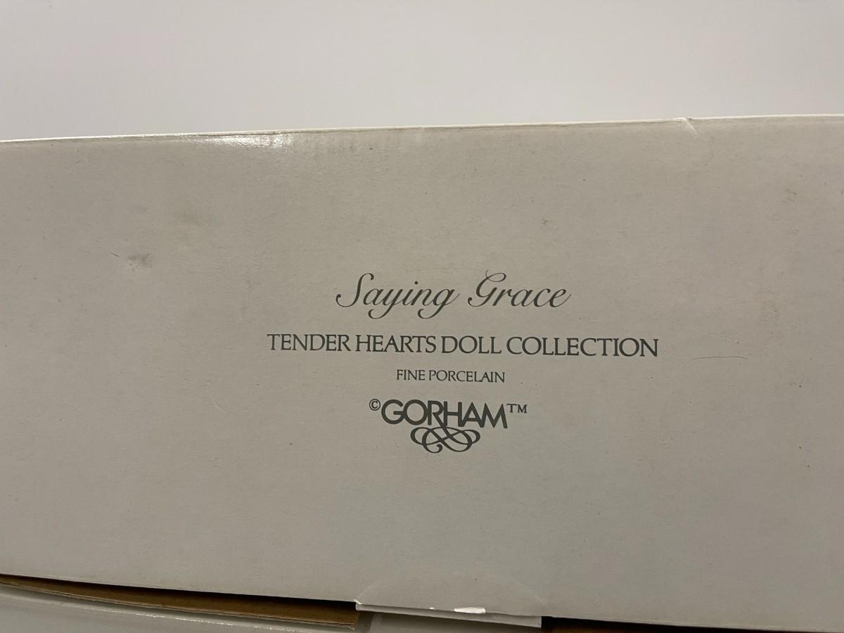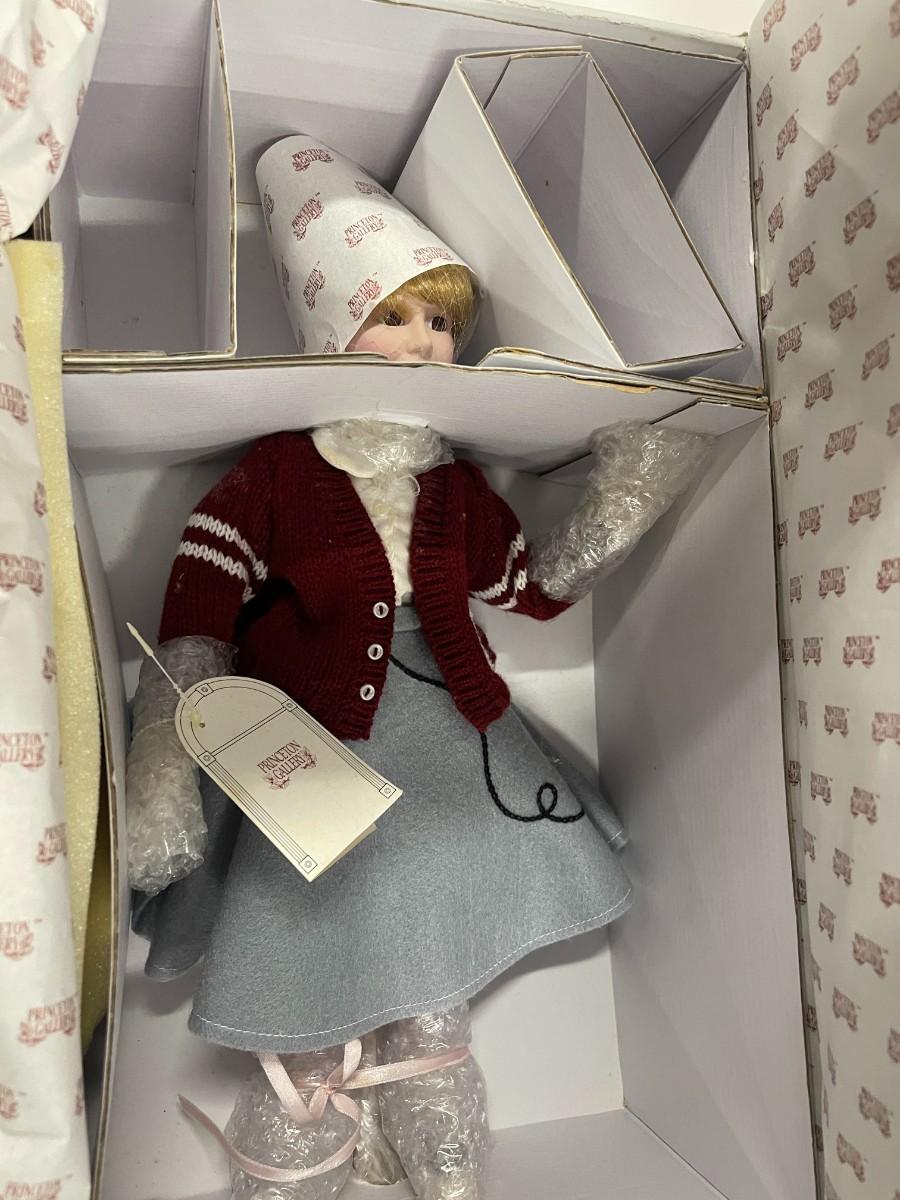 Lot of 3 Gorham porcelain dolls, new in boxes. Includes: Saving Grace from the Tender Hearts Doll Collection, Erin's Up at Bat from the Sporting Kids Doll Collection and Happy Birthday Amy, complete with cake.