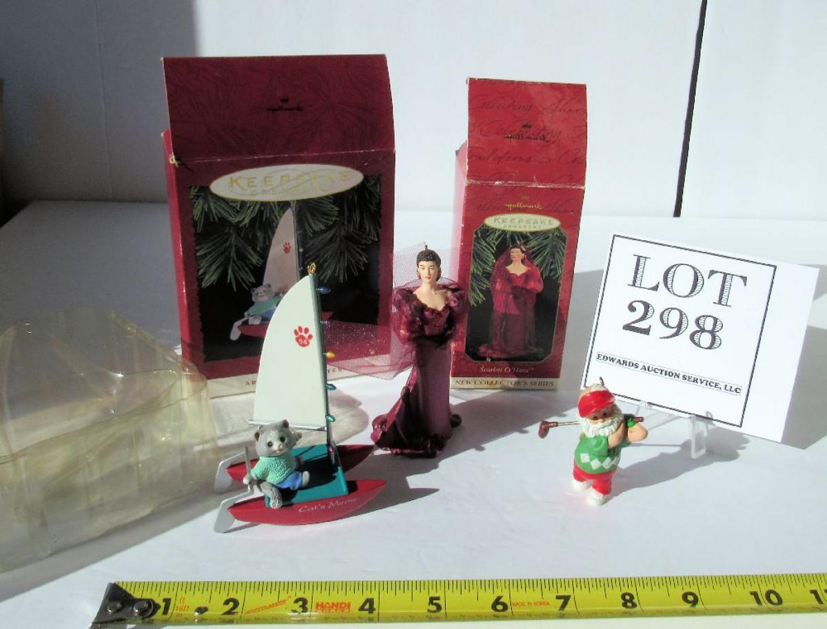 Lot of 3 Hallmark Christmas Ornaments: Scarlet O'Hara 1997, Cat's Meow 1994, Golf Santa 1989