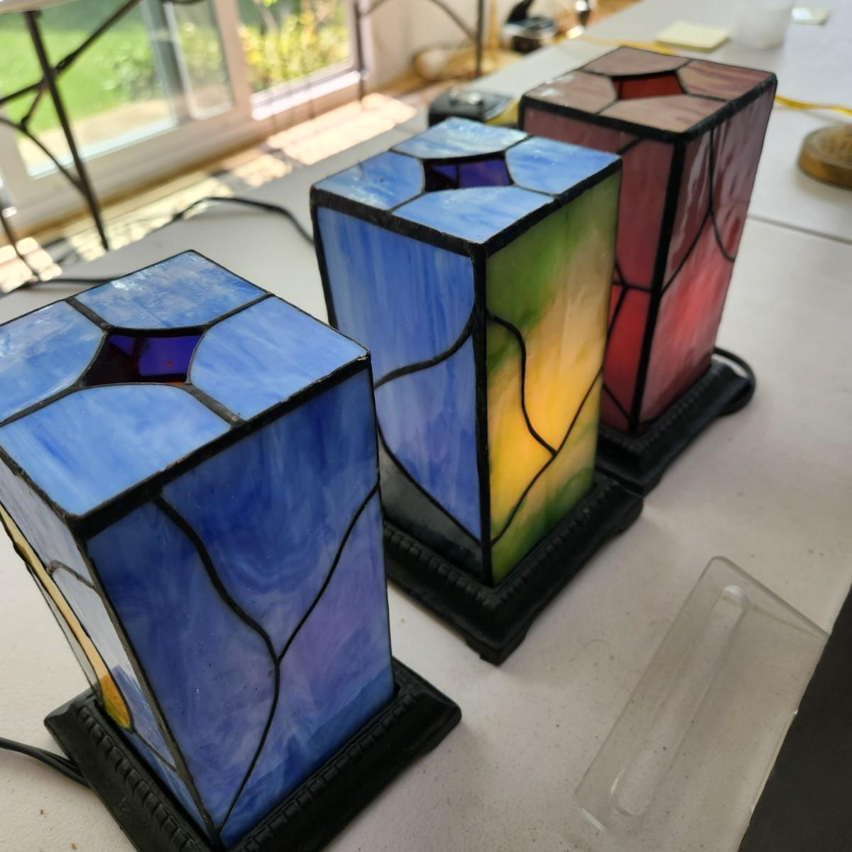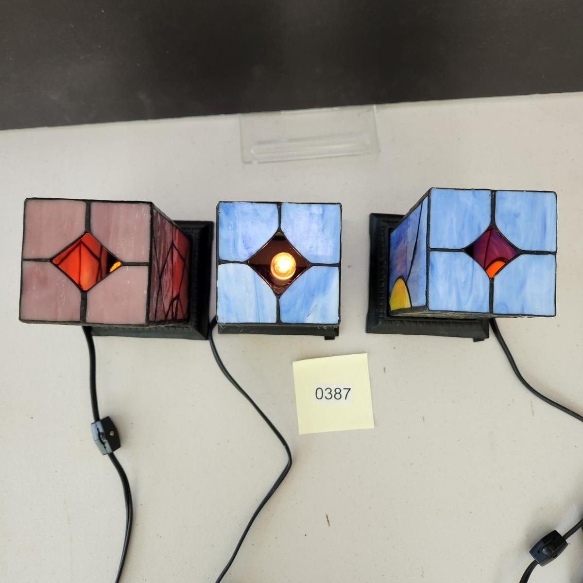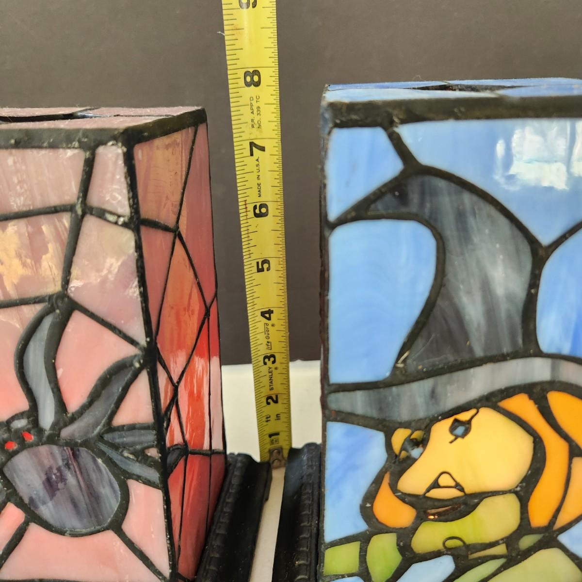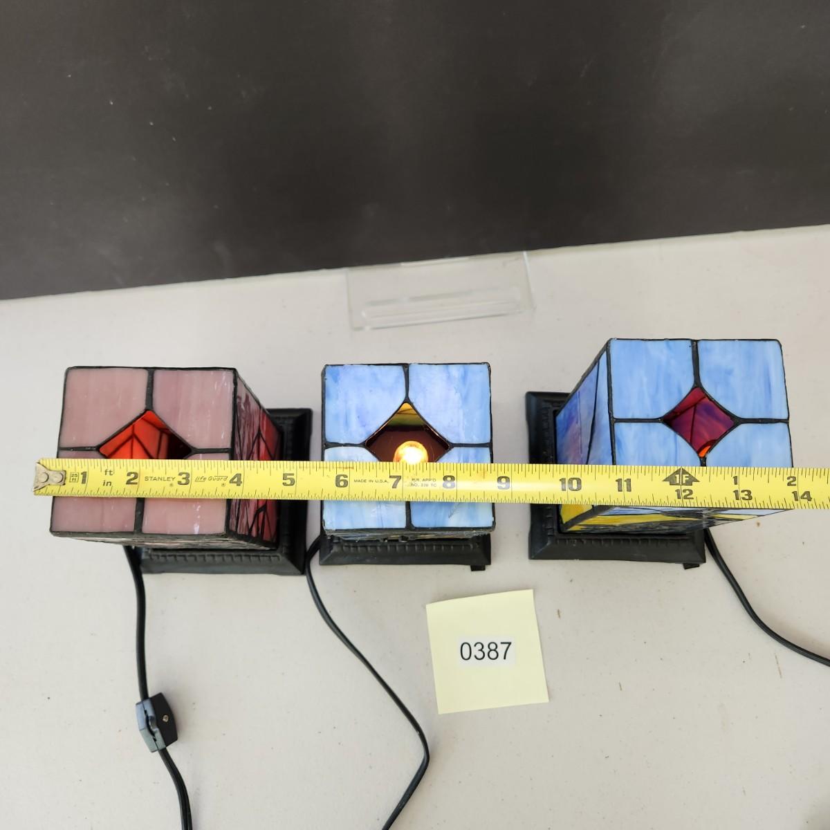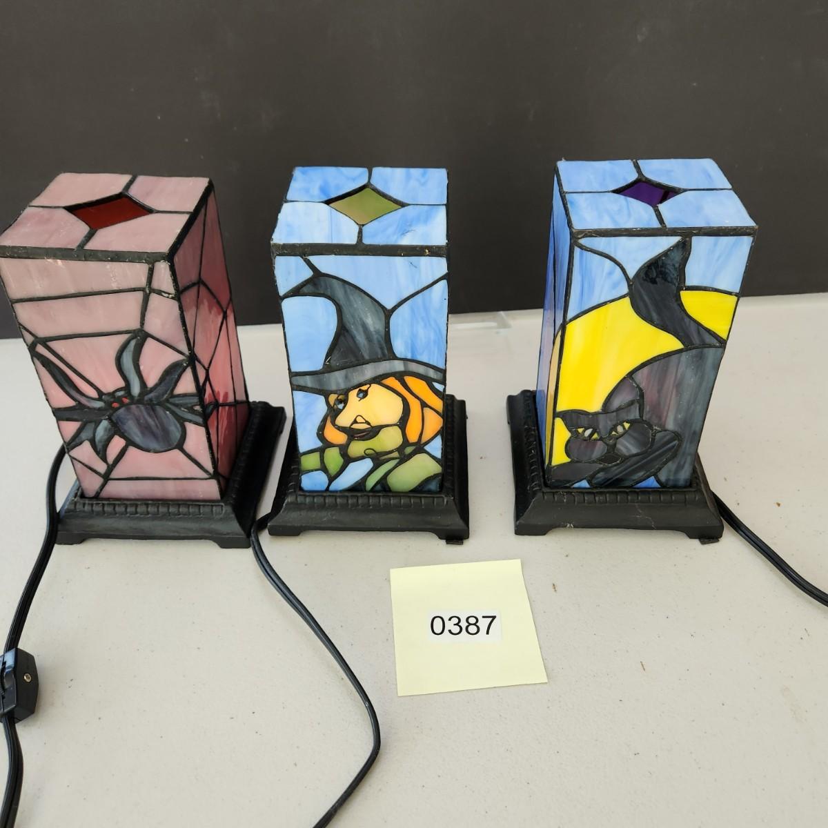 Lot of 3 Halloween Theme Stained Glass Accent lamps Lights Spider Witch Black Cat