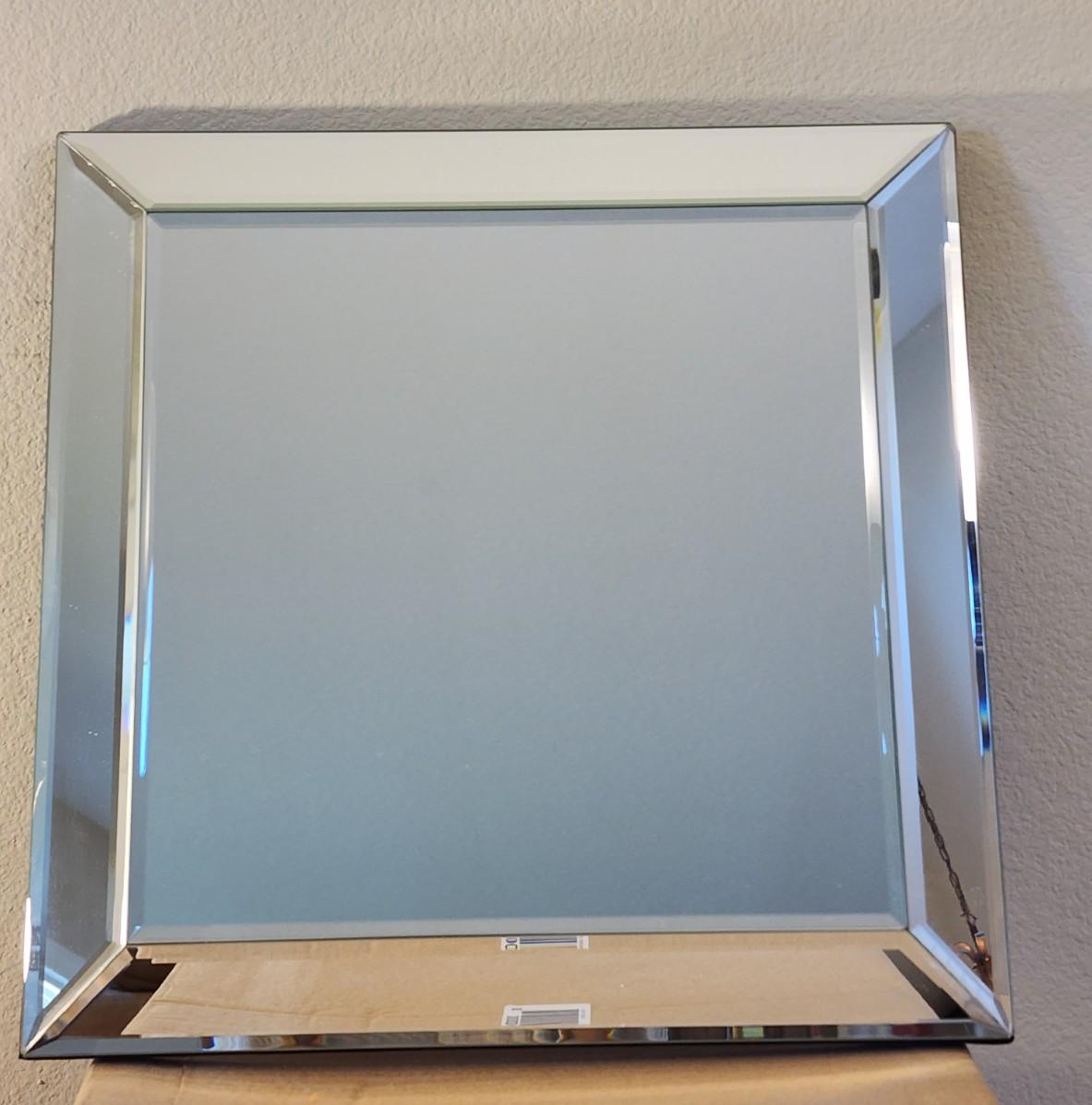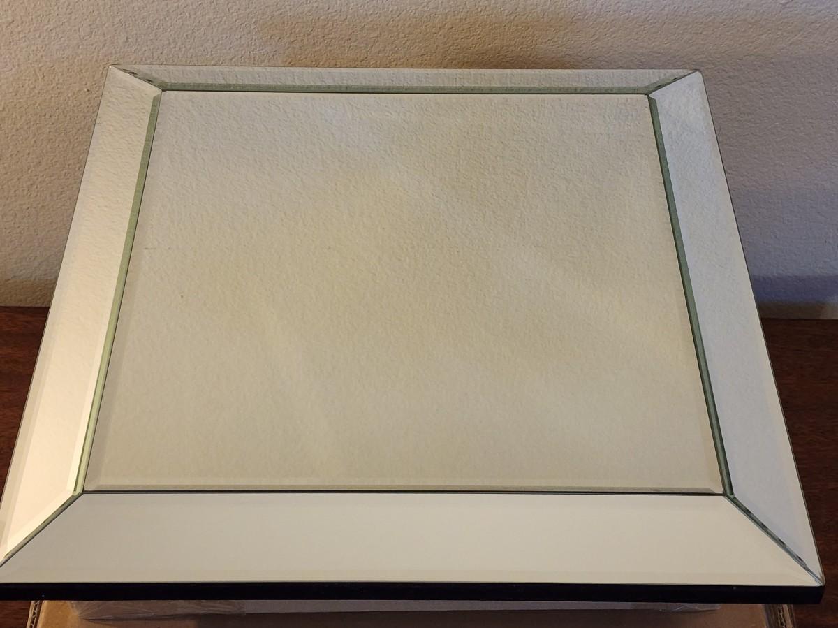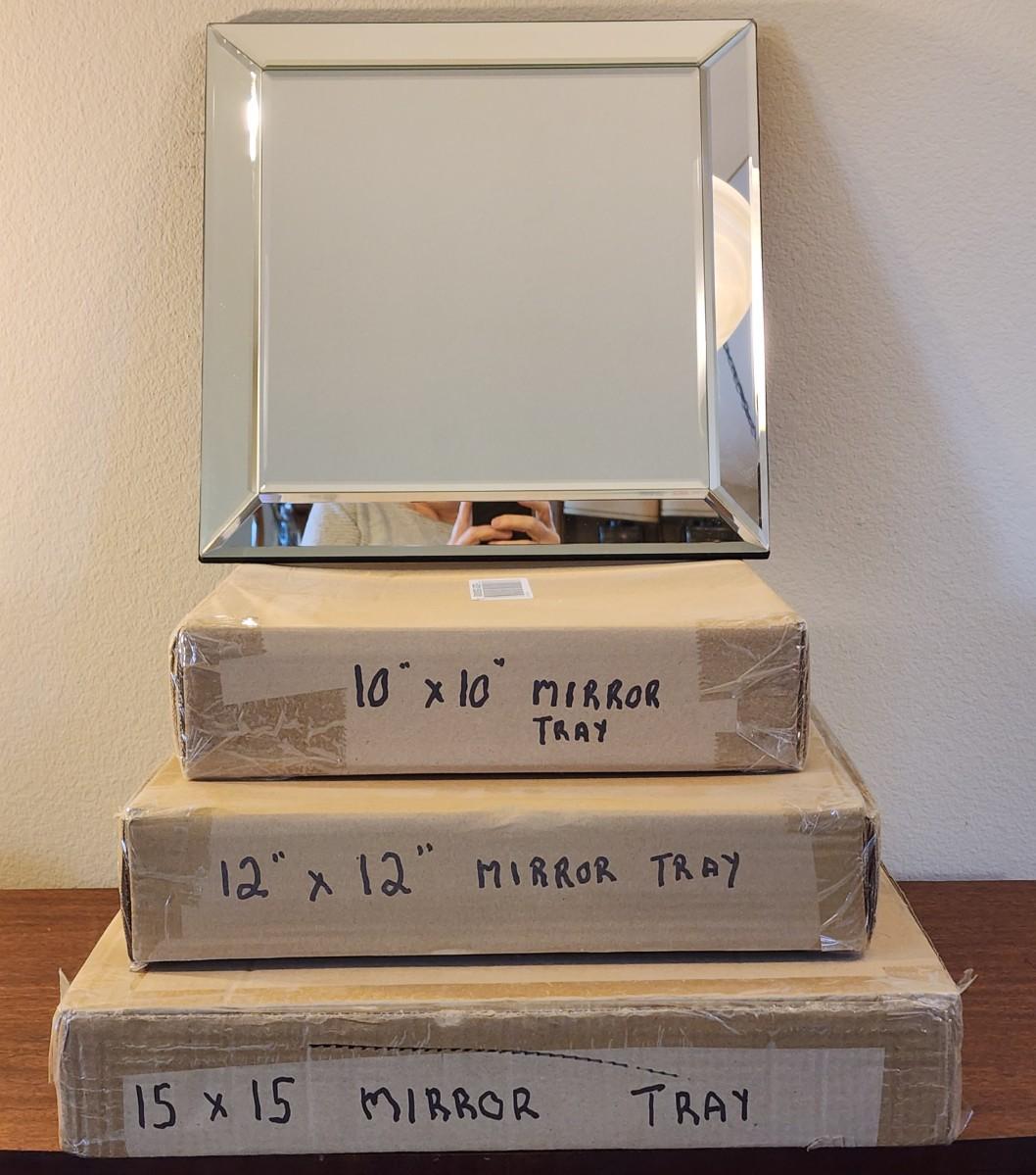 Lot of 3 Heavy Mirrored Trays with Beveled Edges - NEW, still in original boxes. 15", 12" and 10" trays