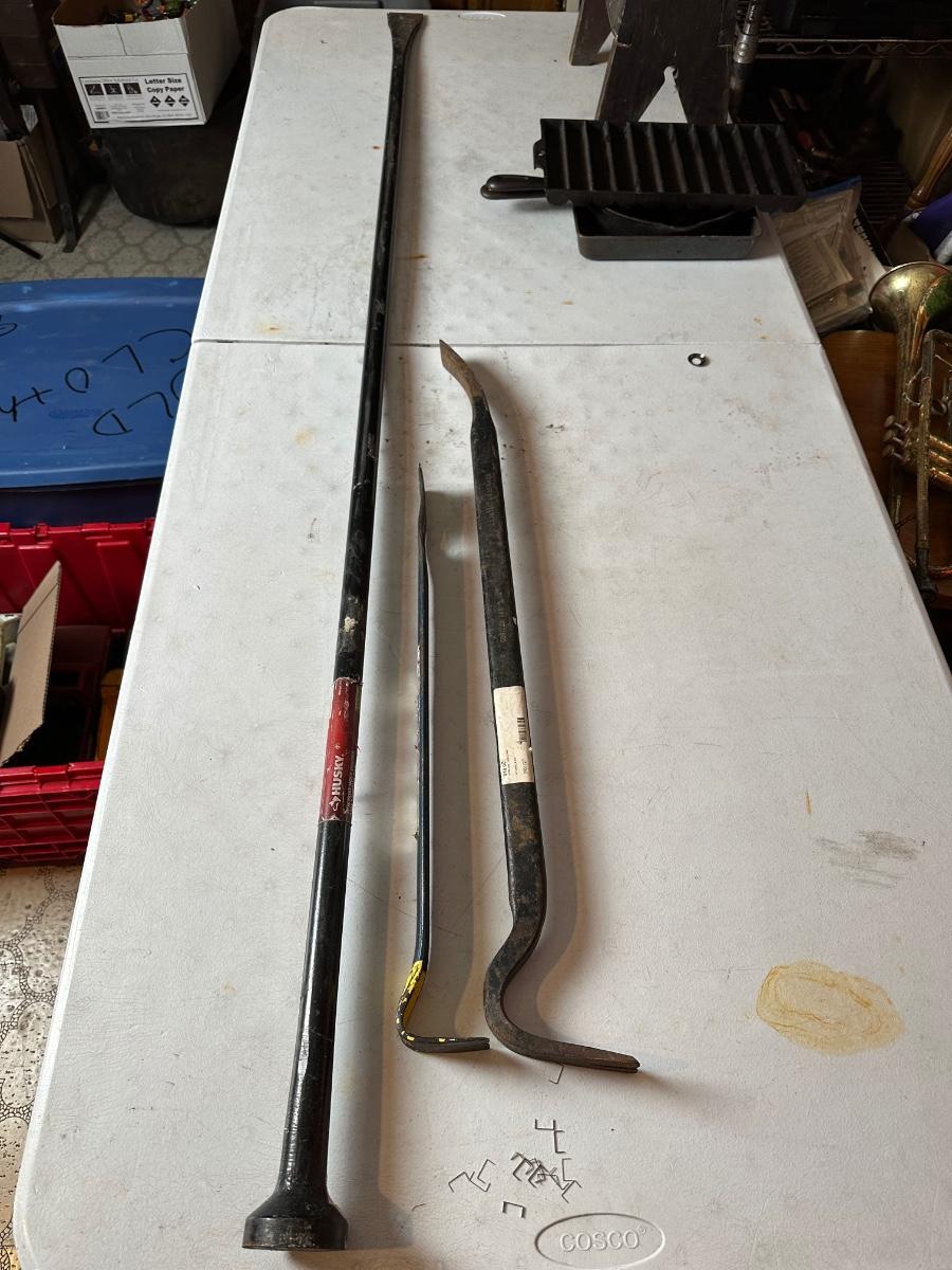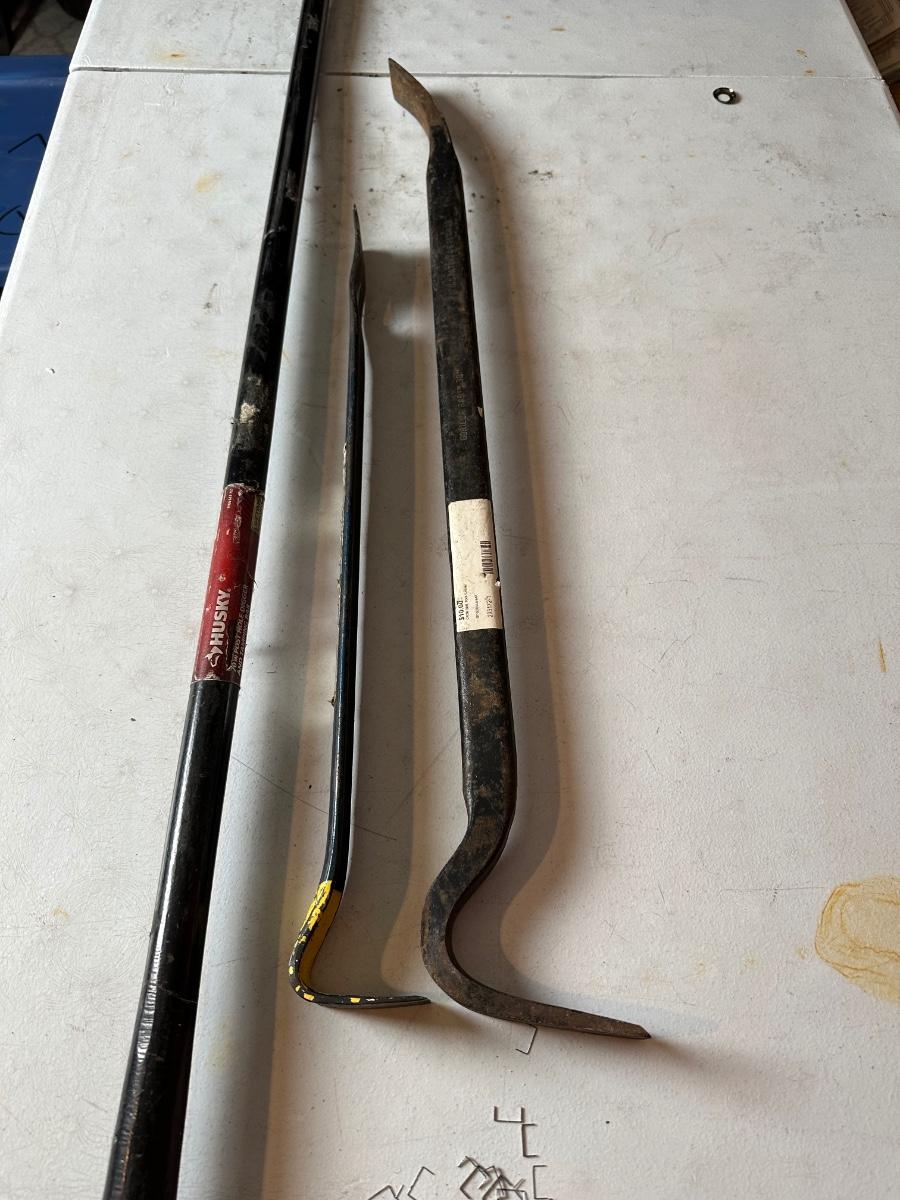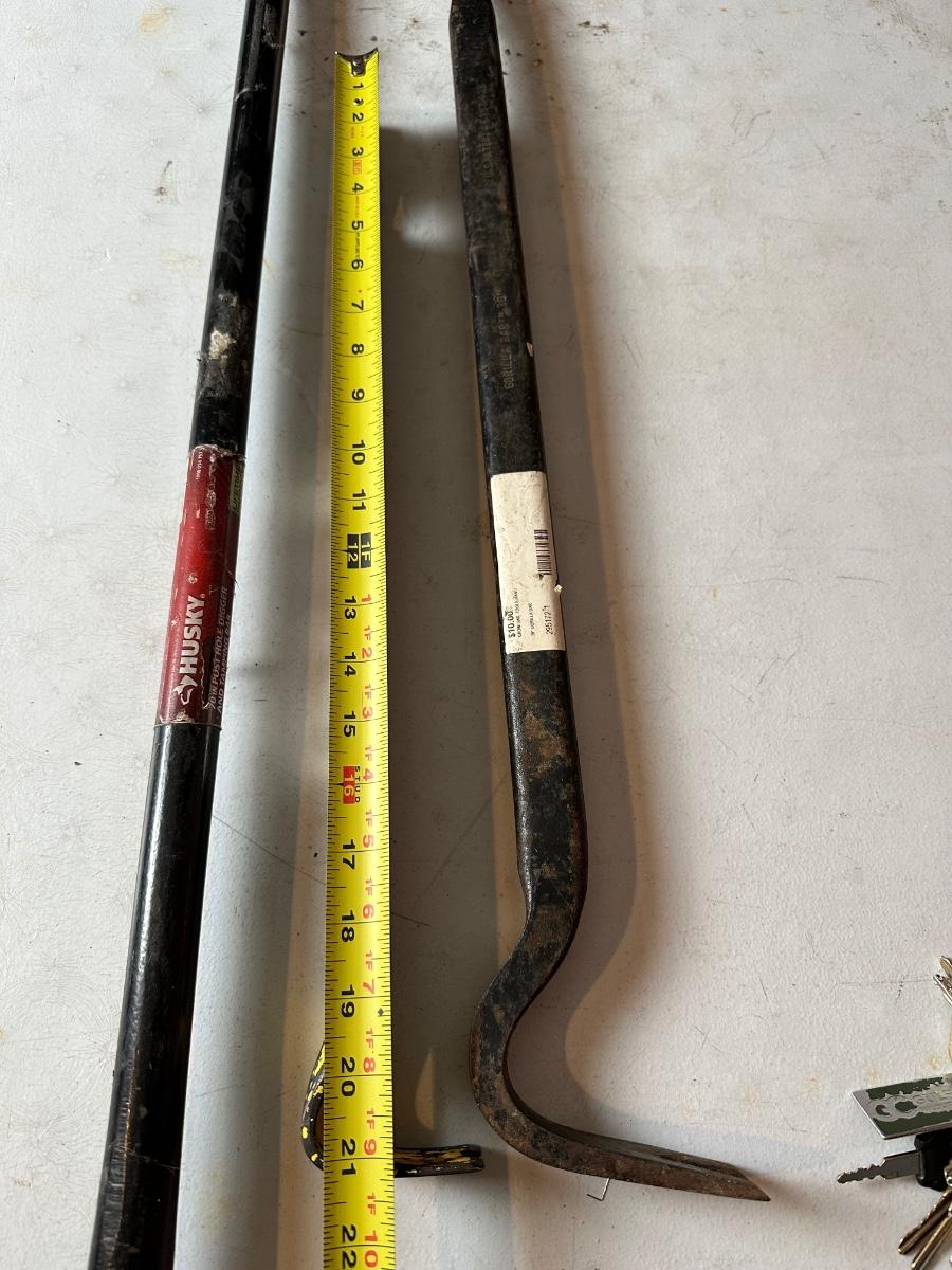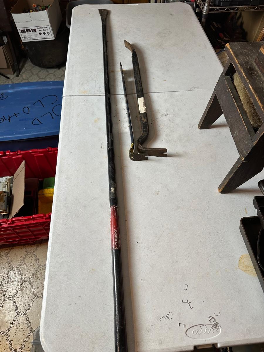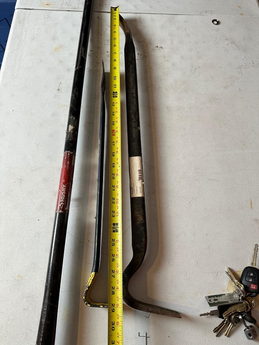 Lot of 3 Heavy-Duty Pry Bars & Digging Bar – Husky + Assorted Crow Bars (20”–70”)