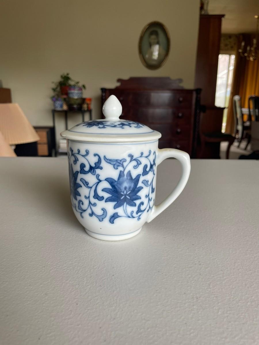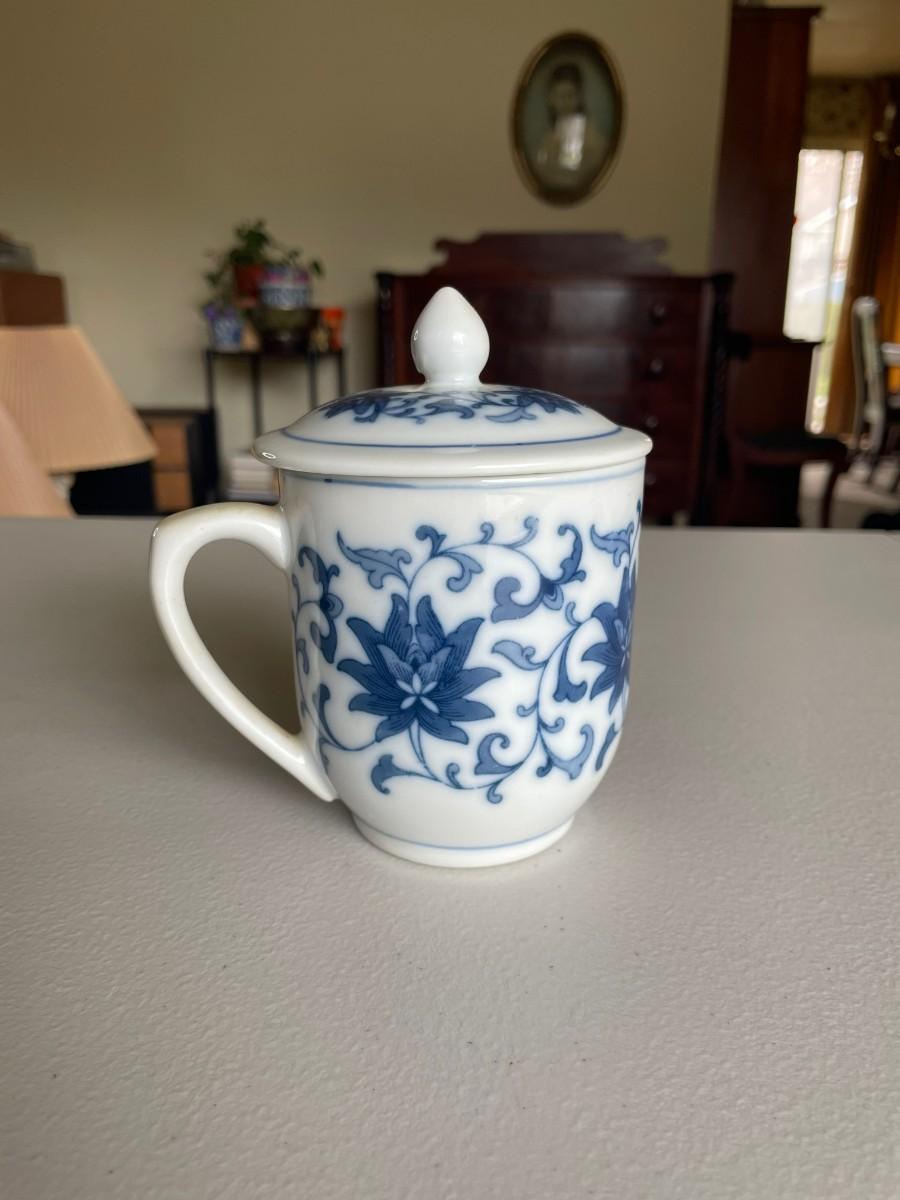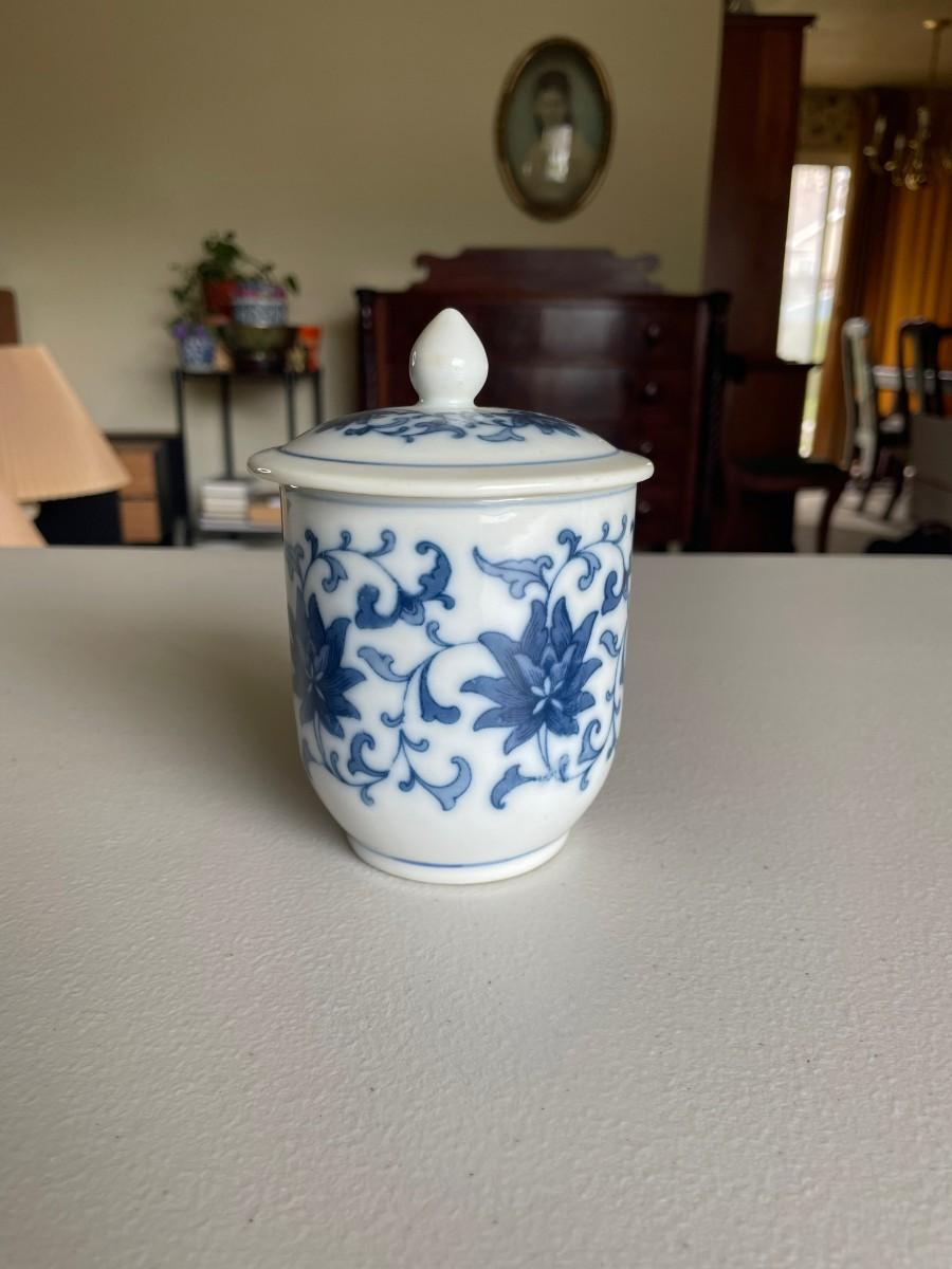 Feather pen and Ink Well, Cup with lid, etc.