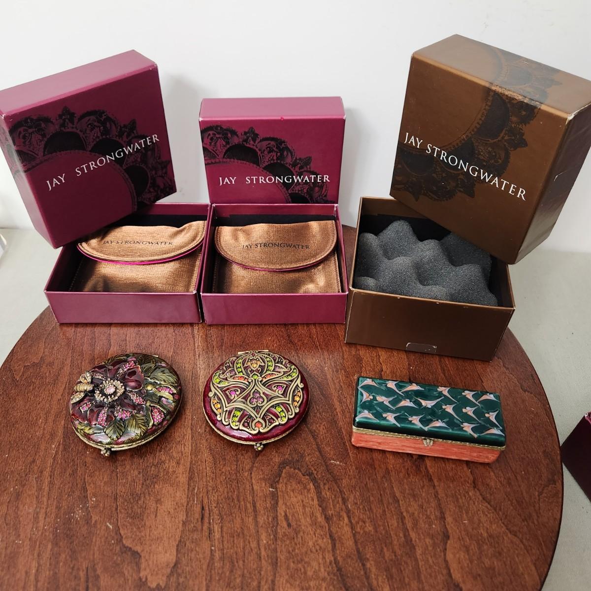 Lot of 3 Jay Strongwater Compact Mirrors & Lipstick wMirror case