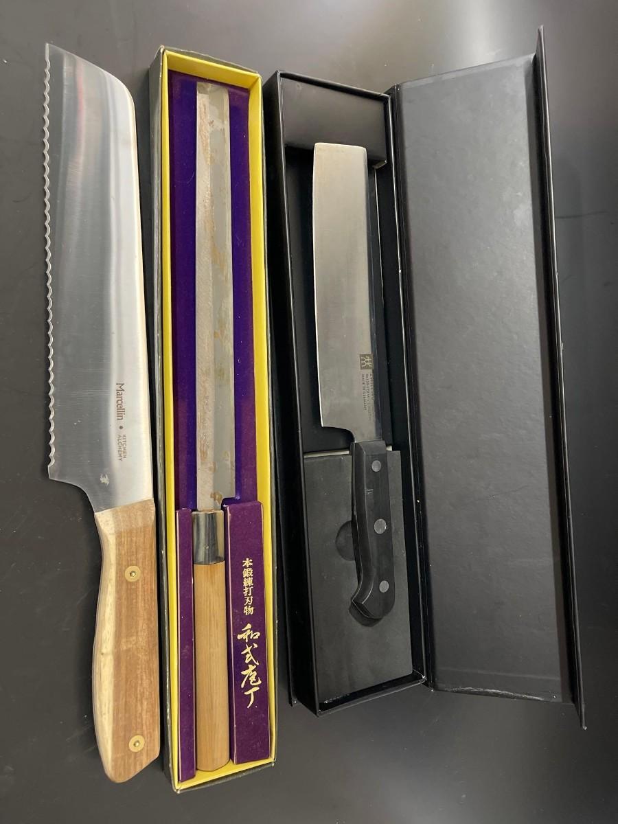 Lot of 3 Kitchen Knives: Marcellin, Zwilling & a Japanese knife