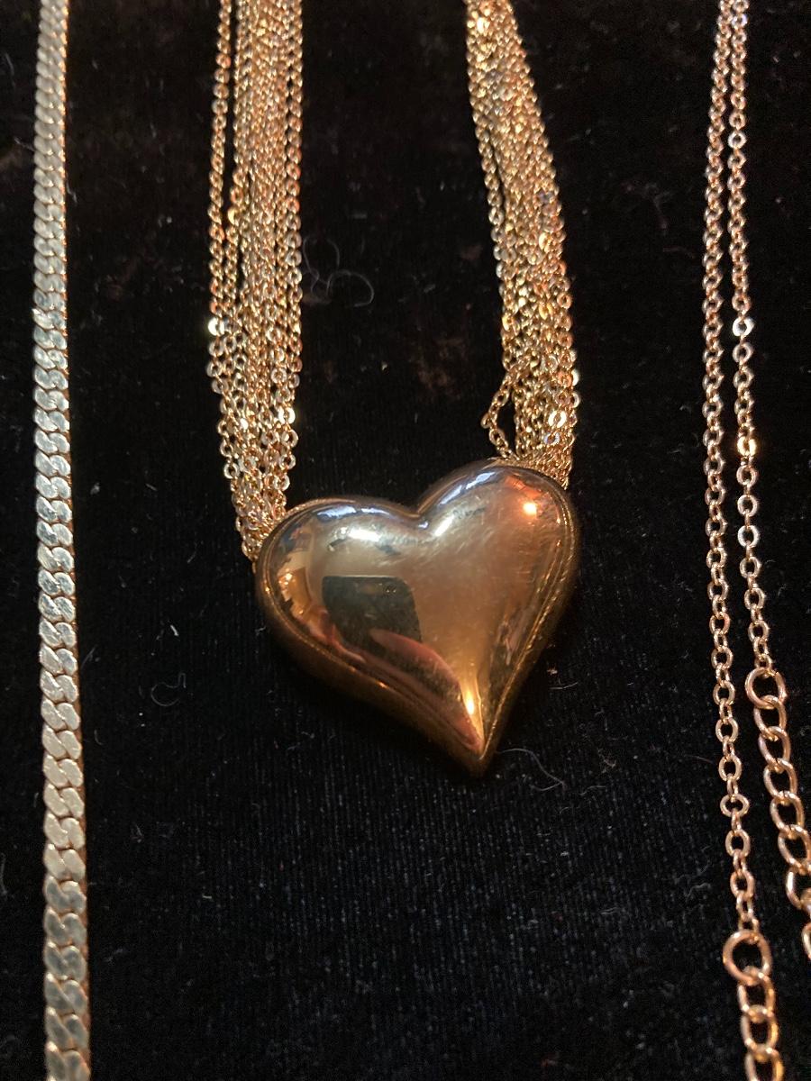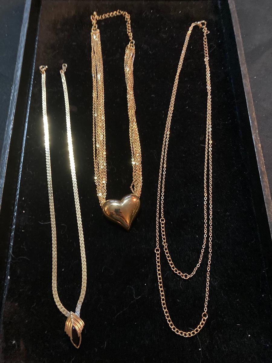 Lot of 3 Large Gold Tone Necklaces with Heart