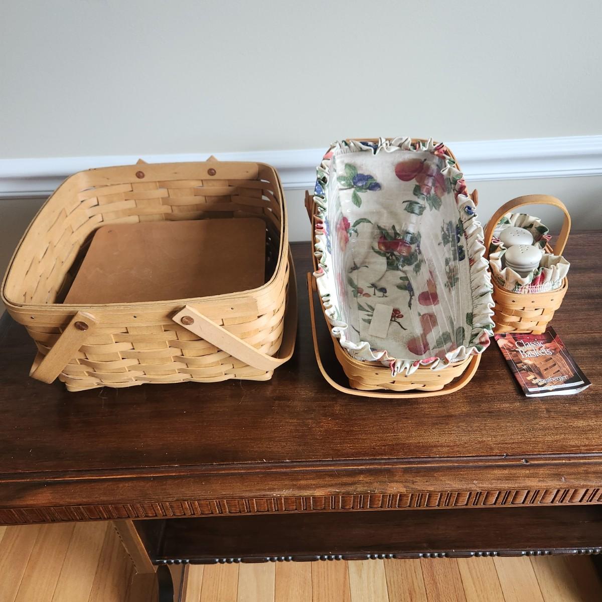 Lot of 3 Longaberger Baskets 2002 Salt & Pepper Shaker w holder