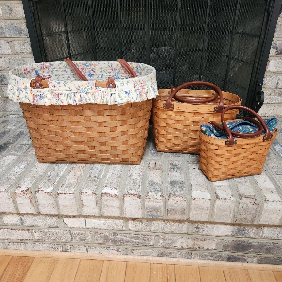 lot of 3 Longaberger Leather Handles Baskets Boardwalk Basket Purse