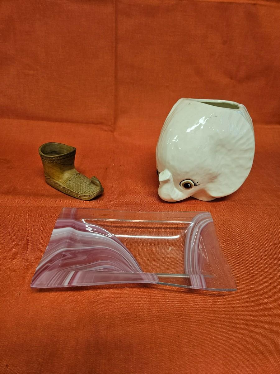 Lot of 3 Misc. Antique Items Including Higgins-Style Art Glass Tray