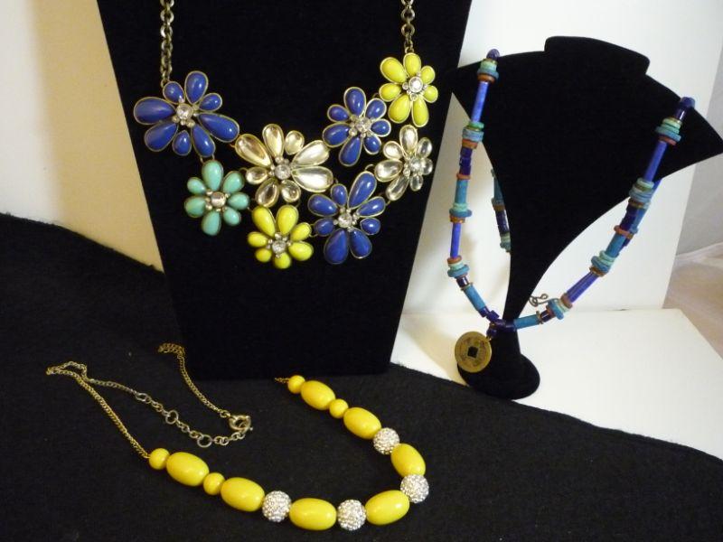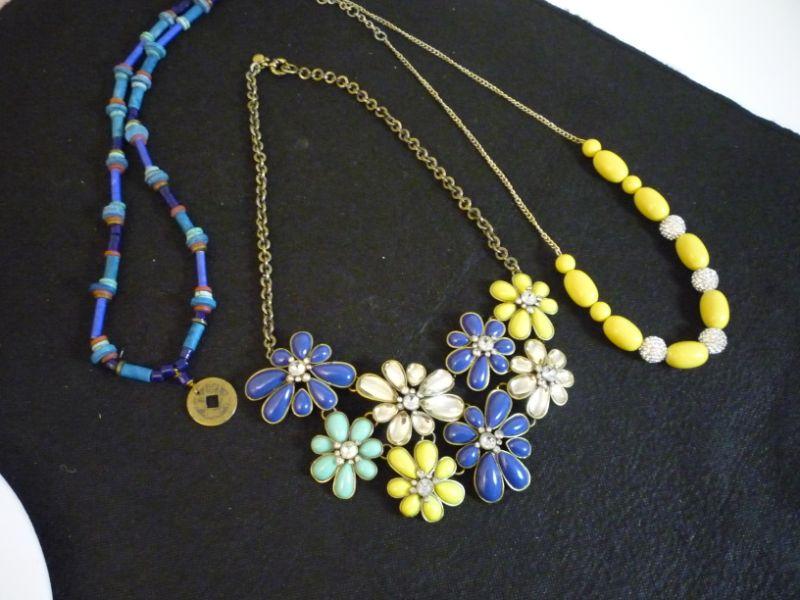 Lot of 3 Necklaces - J Crew Collar Necklace and Vintage Stone with Lucky Coin Plus Bead and Rhinestone
