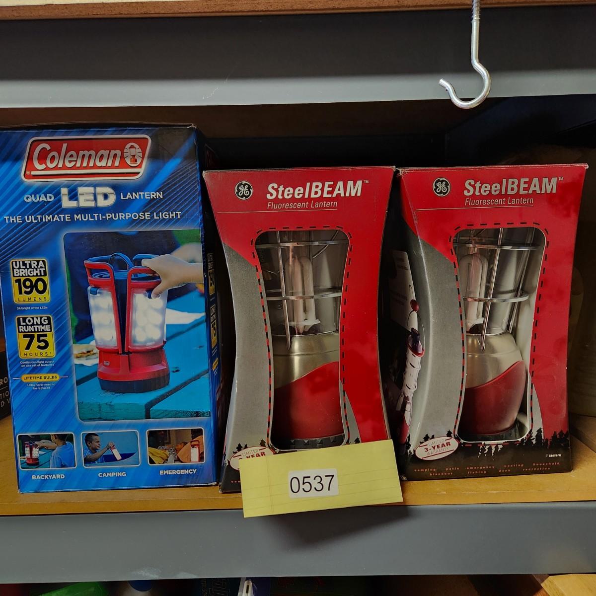 Lot of 3 New Coleman GE SteelBEAM battery lanterns Camping