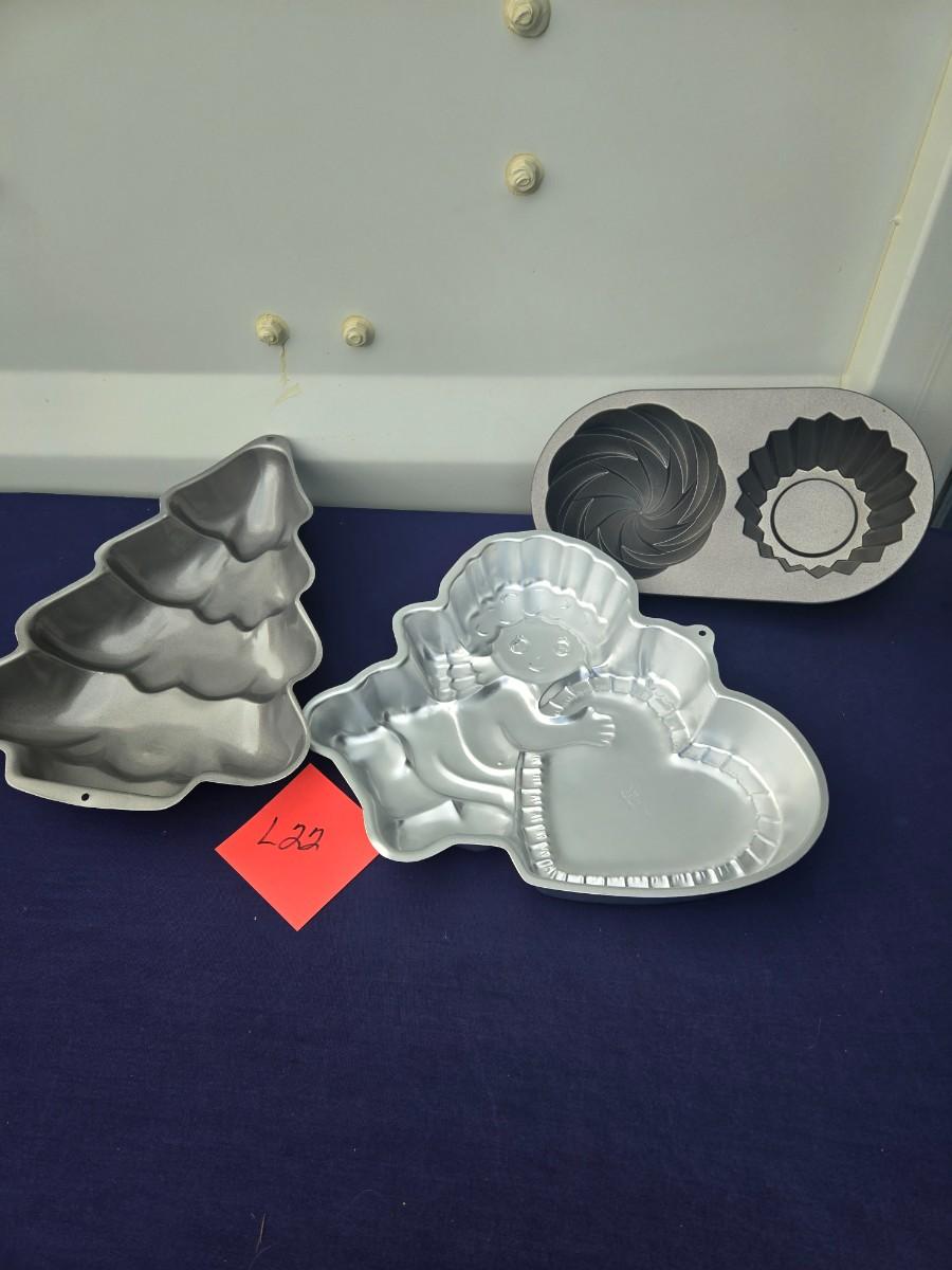 Christmas Tree xake pan, Cupid Cake pan with heart & a cupcake pan