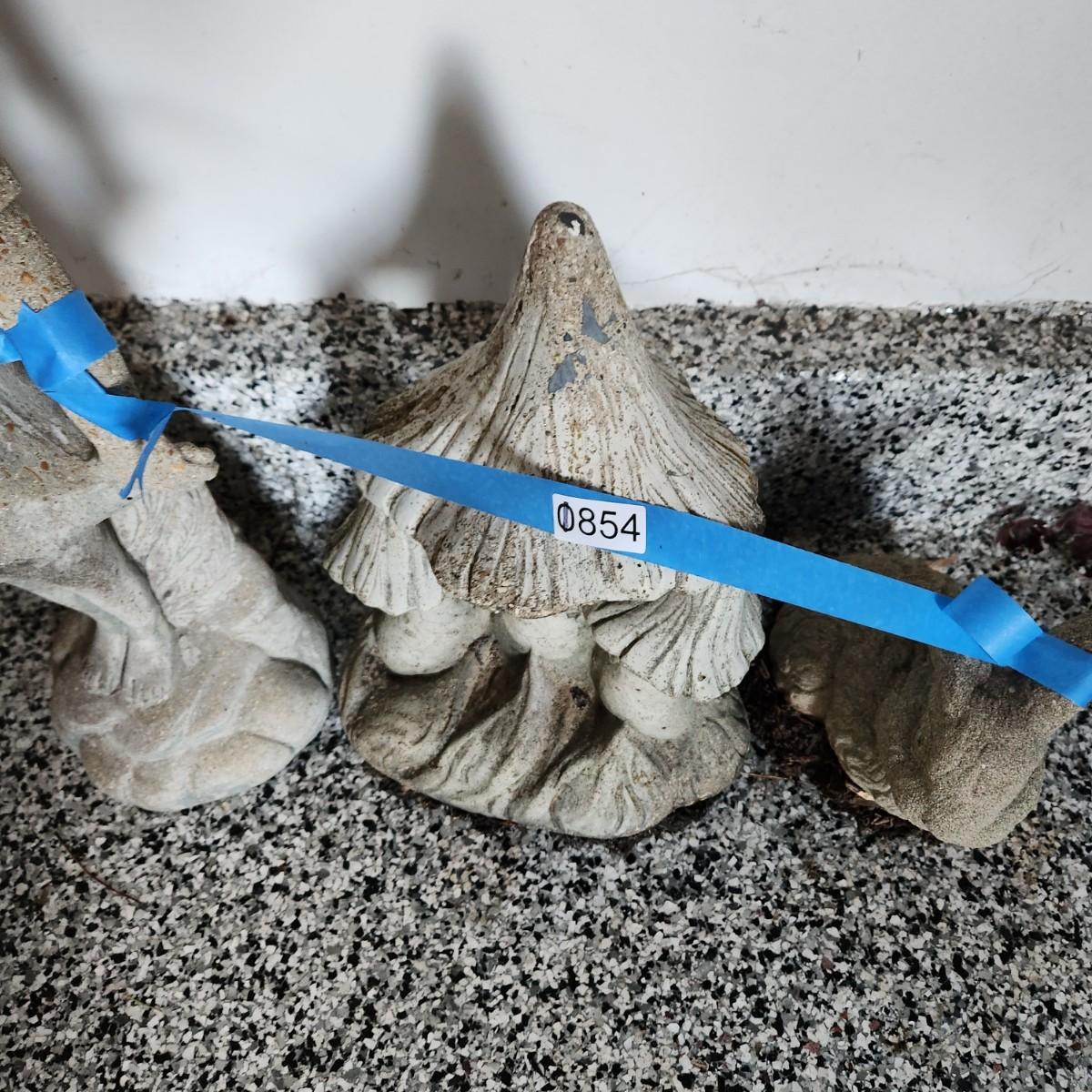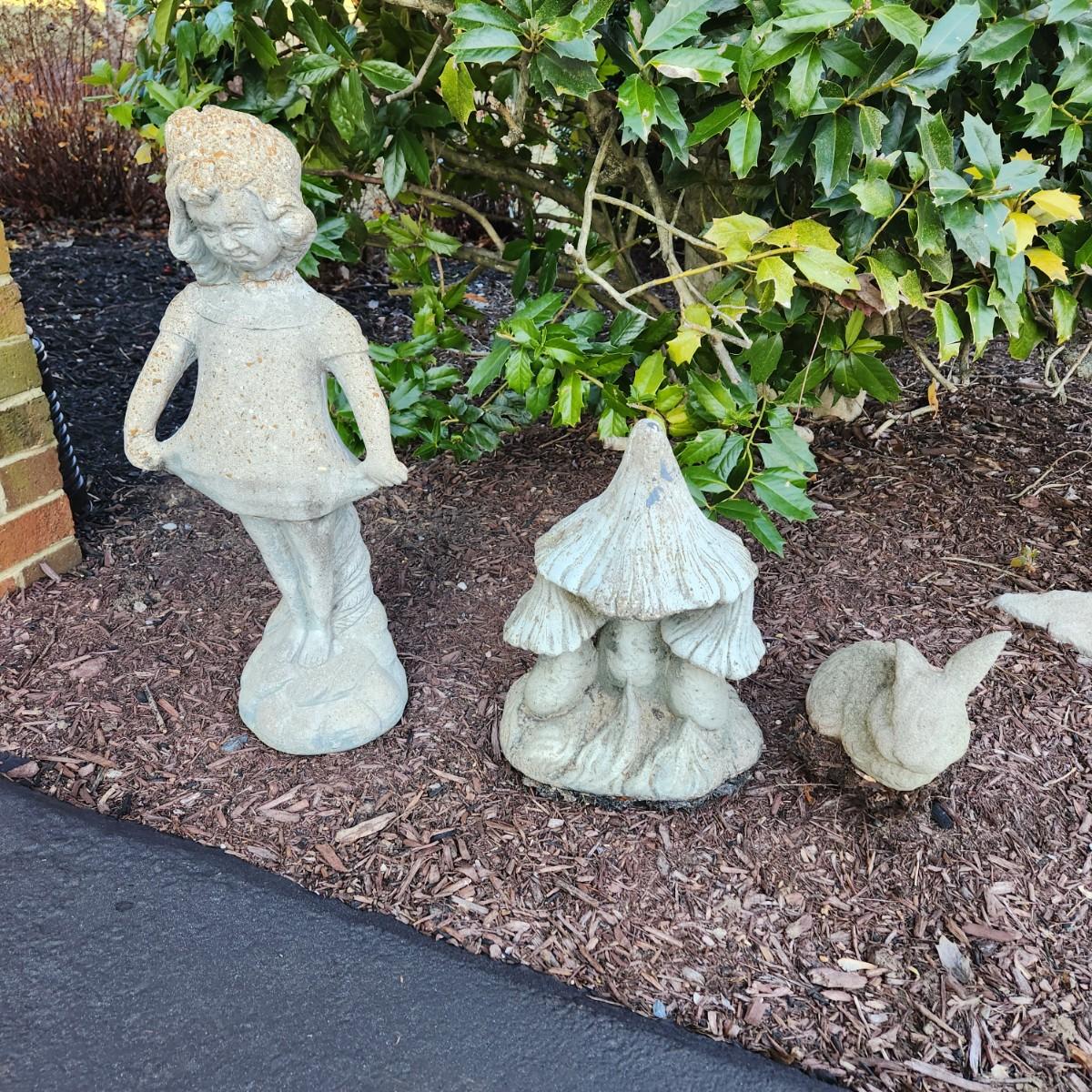 Lot of 3 Pcs Concrete Yard Art Child Mushroom Rabbir