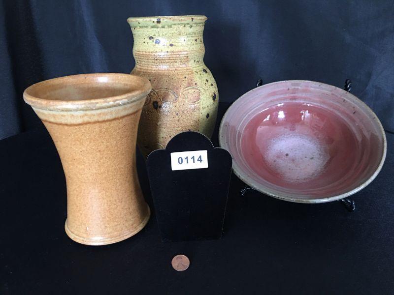 Lot of 3 Pcs Studio Pottery Some Signed No Chips Lot # 114
