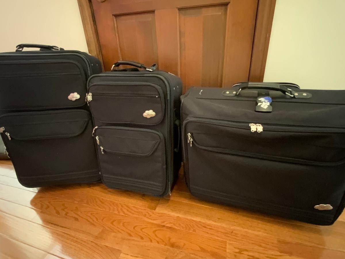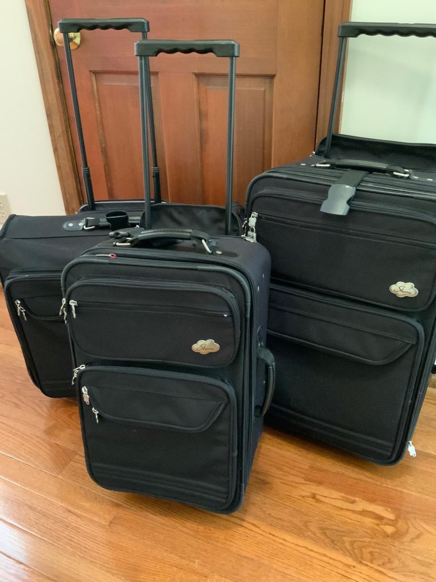 Lot of 3 Piece Skyway Luggage on Wheels. One is a garment bag. Can be shipped but these are fairly larger pieces..
