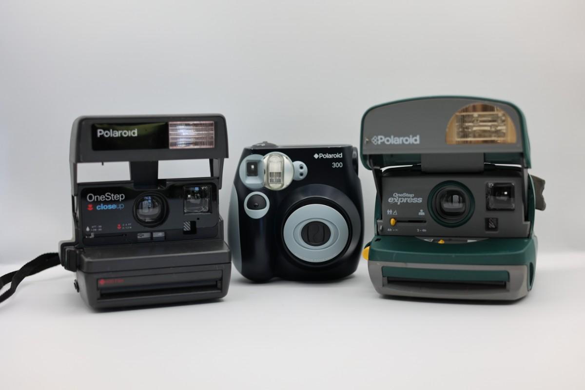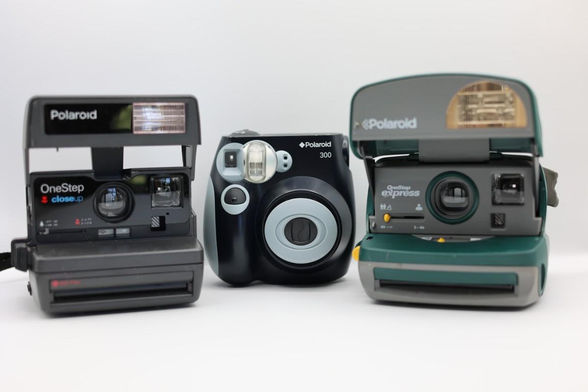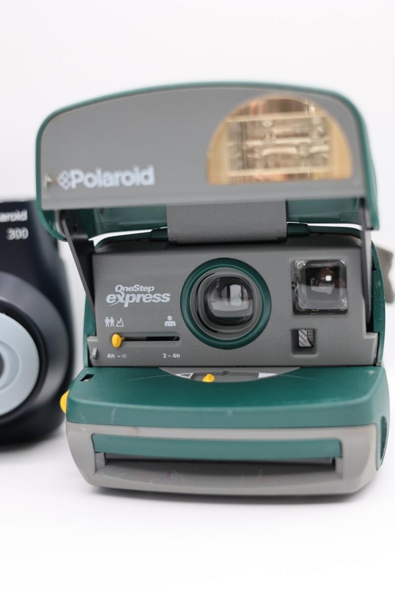 Lot of three Polaroid instant cameras, includes OneStep Close-Up, OneStep Express, and Polaroid 300 model. Untested. Sold as-is.