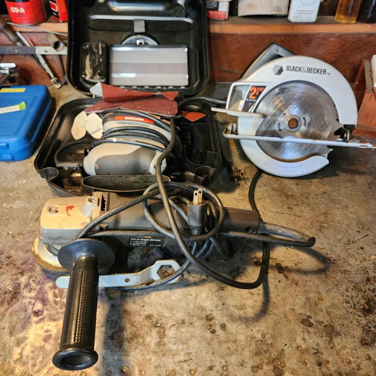 Lot of 3 Power Tools Craftsman 4.5" Angle Grinder, Black & Decker Corded Circular Saw, Craftsman Sander/ Polisher