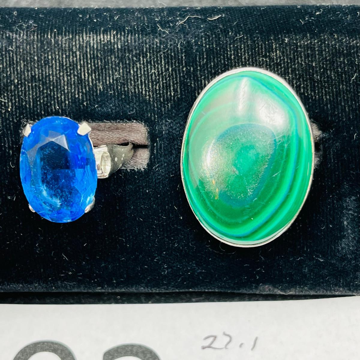 Malachite Ring. 1.25" tall. Marked Sterling, Size 5