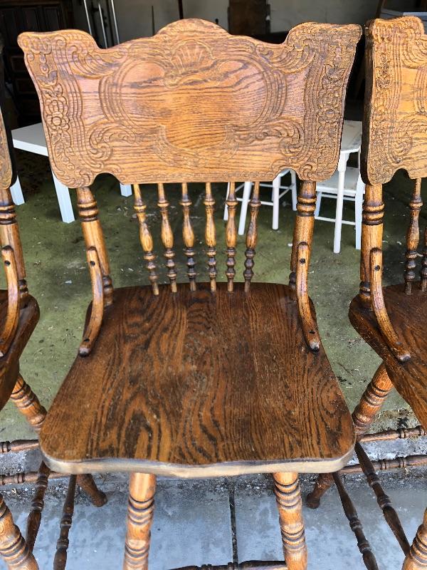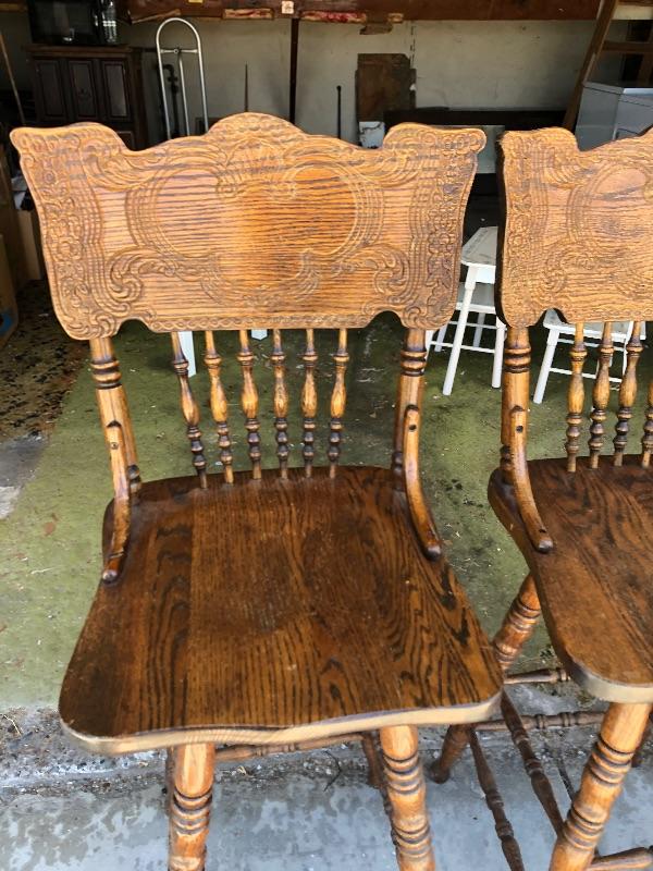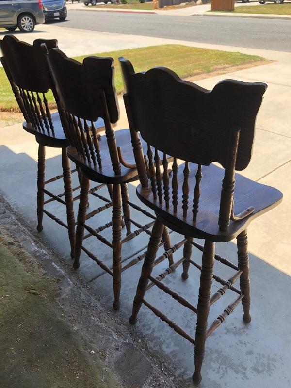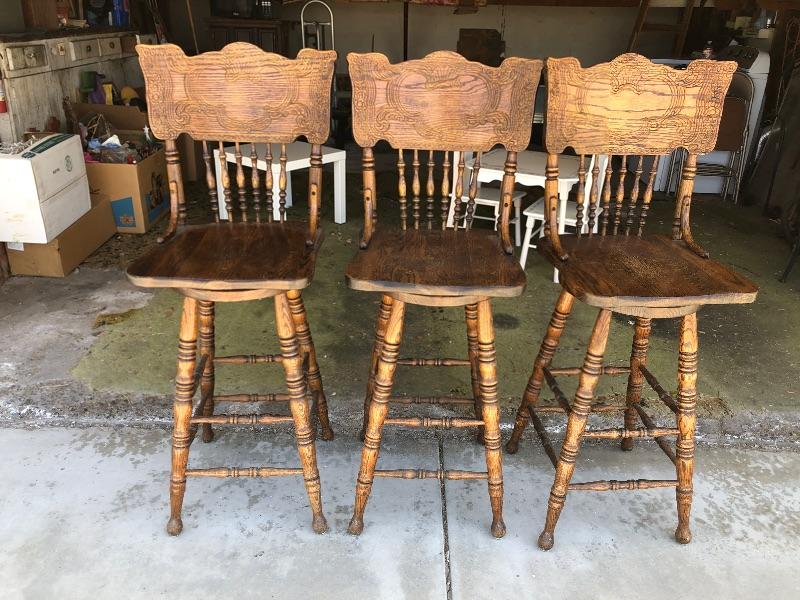 Lot of 3 rotating Oak Barstools in dark oak finish