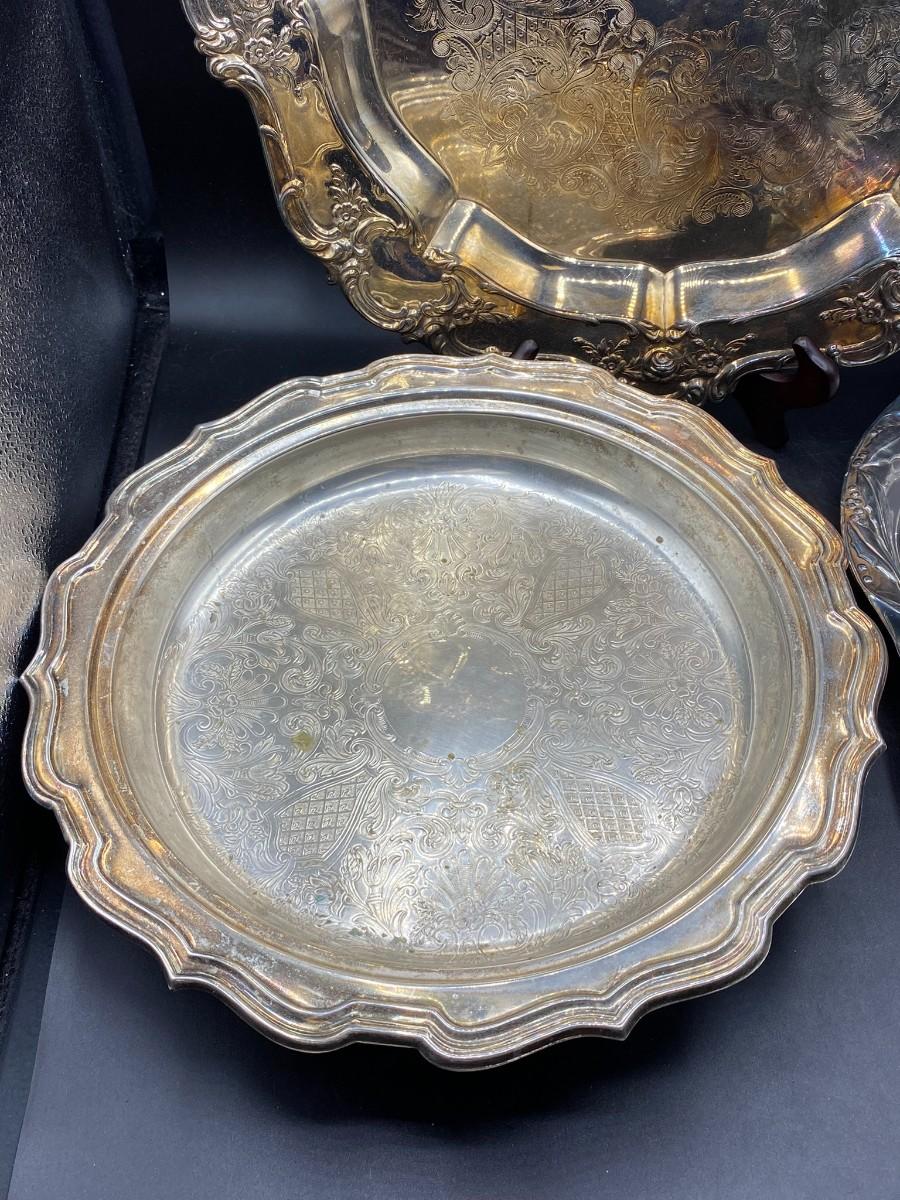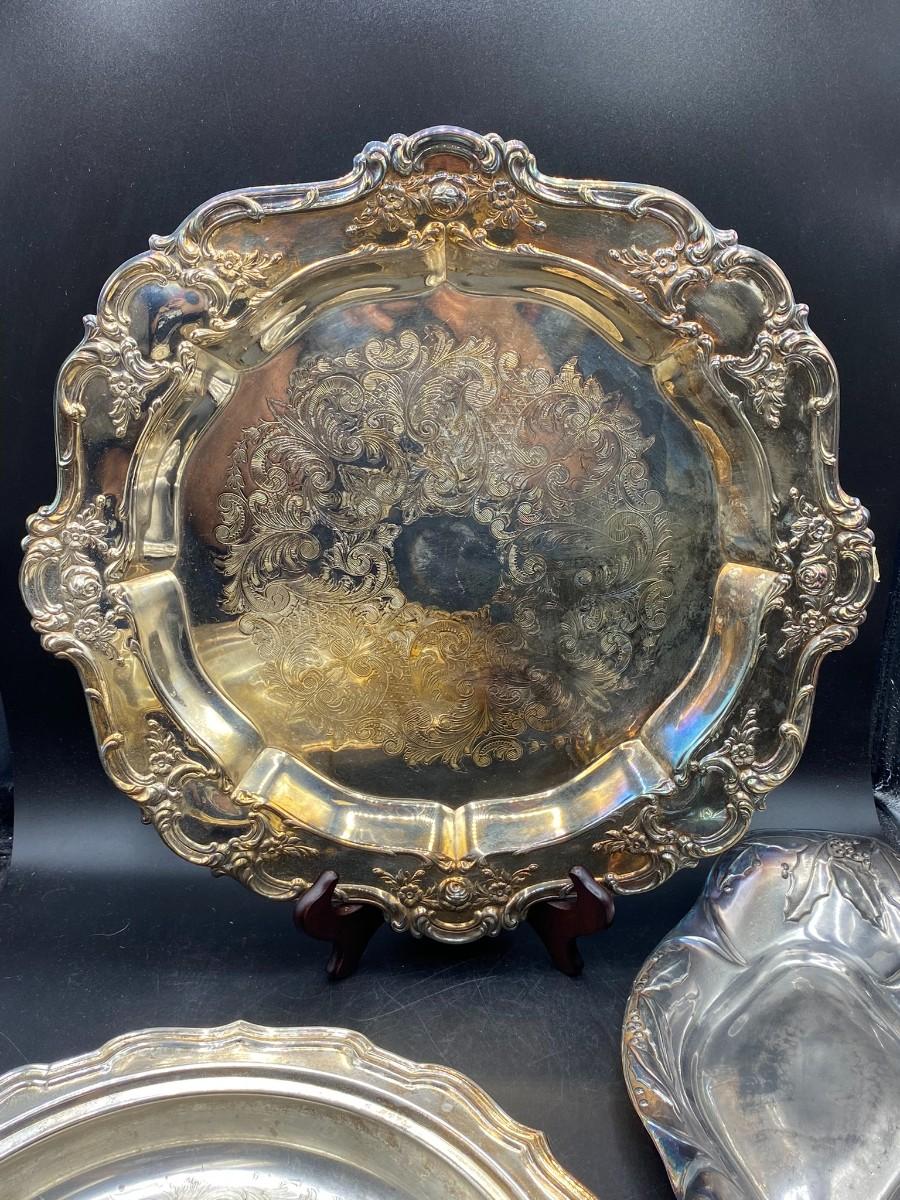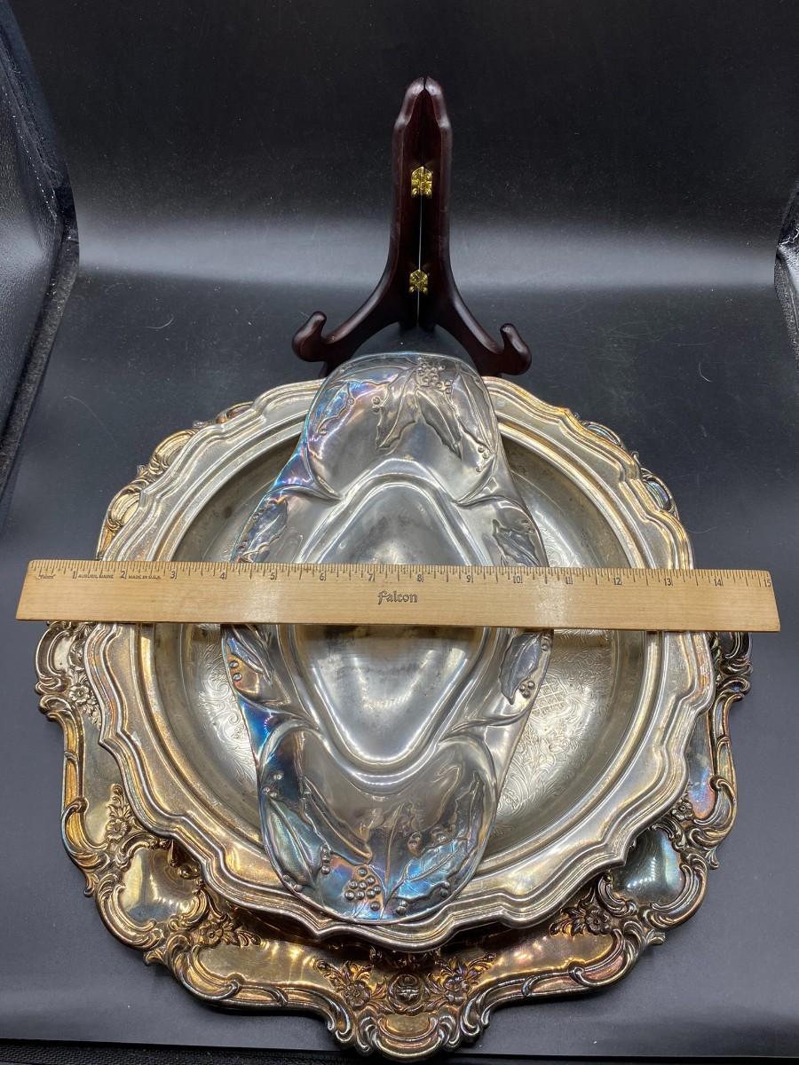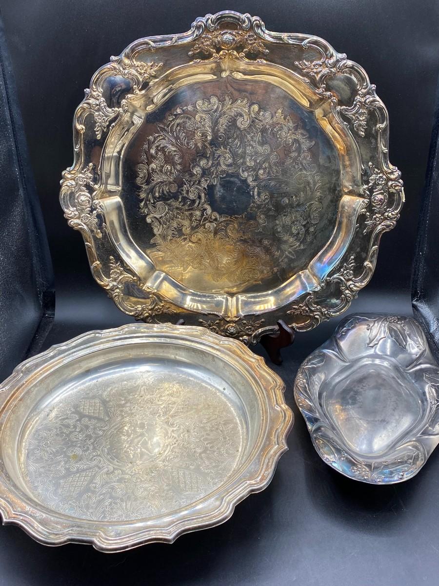 Lot of 3 silver plate serving pieces. Good condition, need to be polished.