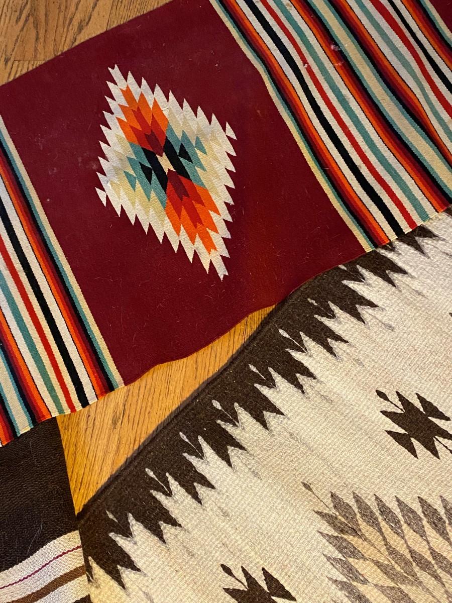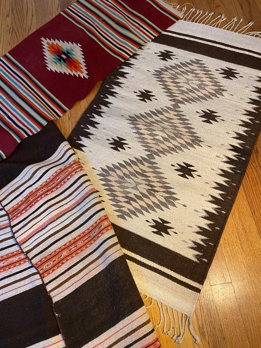 Lot of 3 Small Hand Woven Area Rugs Table Runners. Southwest styles. Native American styles. In very good condition.