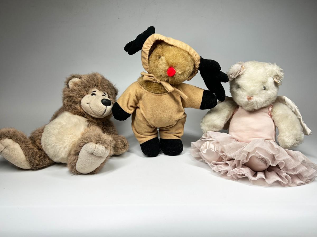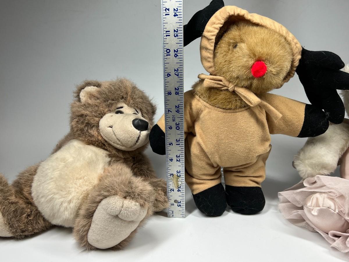 Lot of 3 Small Teddy Bear Plush Stuffed Animals. Previously displayed condition.