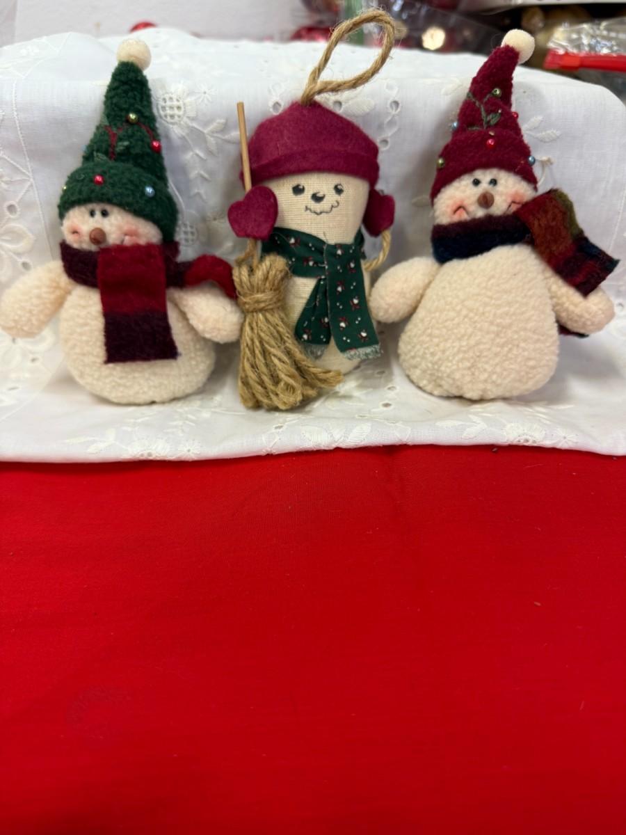 Add a festive touch to your holiday decor with this delightful lot of 3 plush snowman ornaments. Each adorable snowman is ready to spread joy and warmth throughout the season.