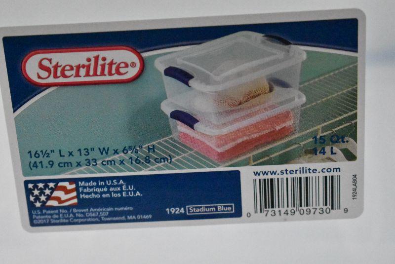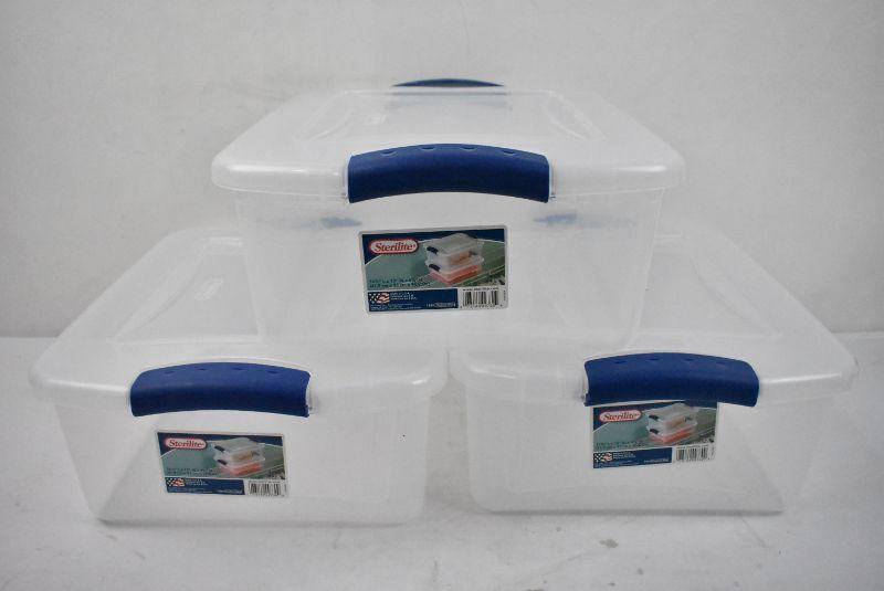 Lot of 3 Sterilite Storage Bins with Latching Lids: 15 Quart Each - New