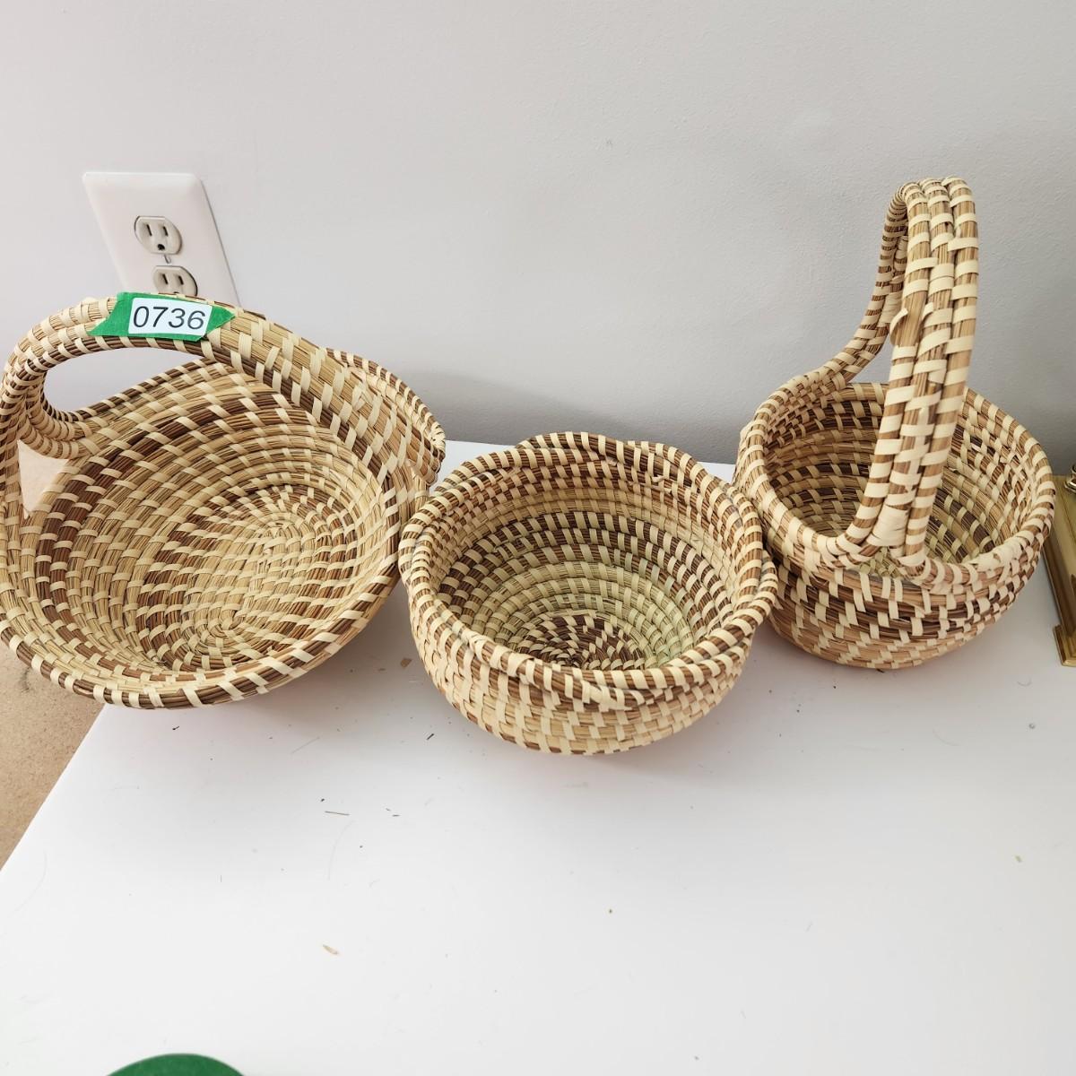 Lot of 3 Sweetgrass Handmade Baskets 2 w Handles