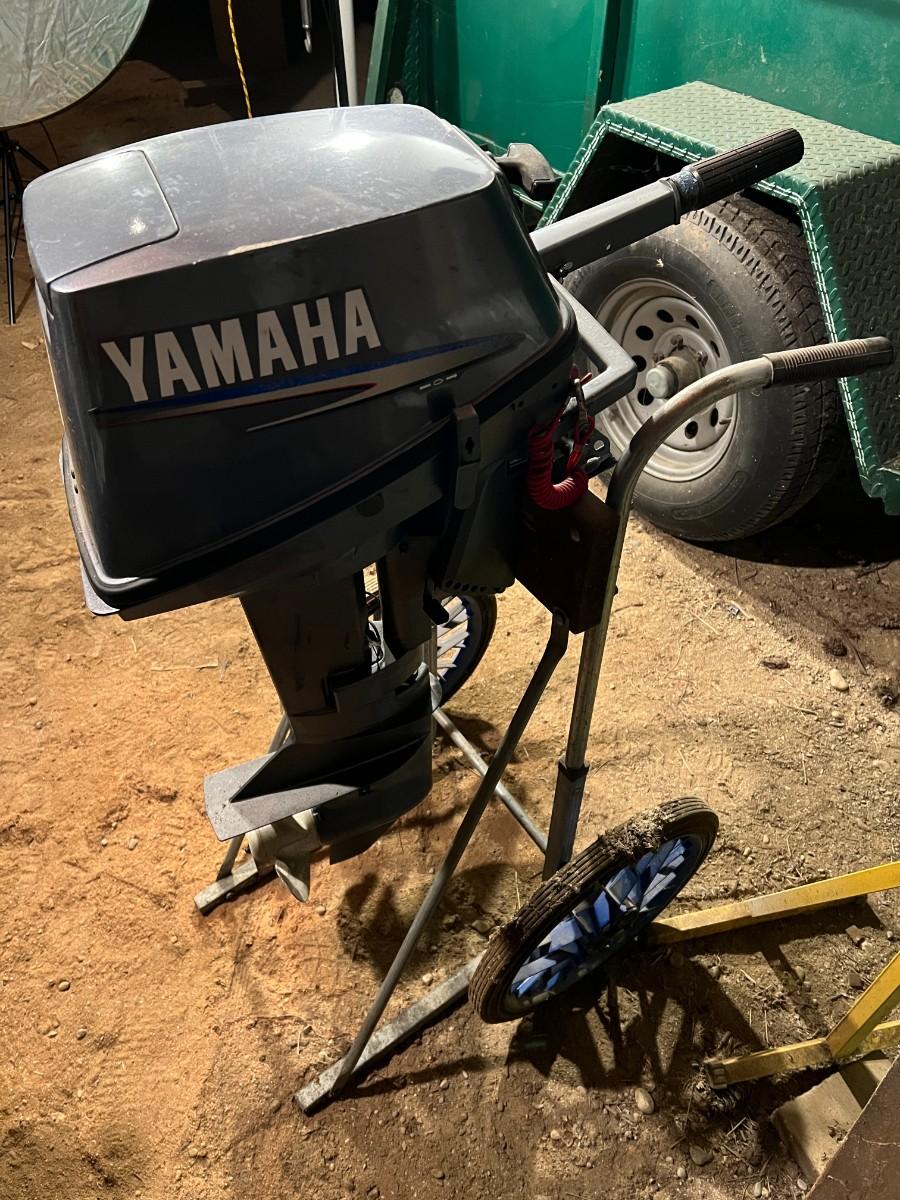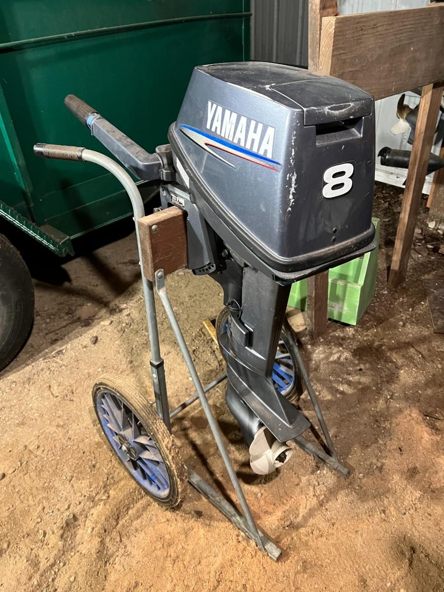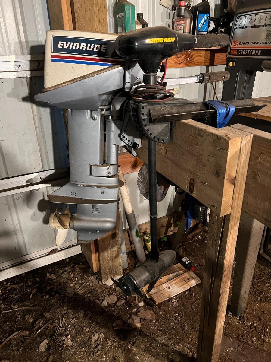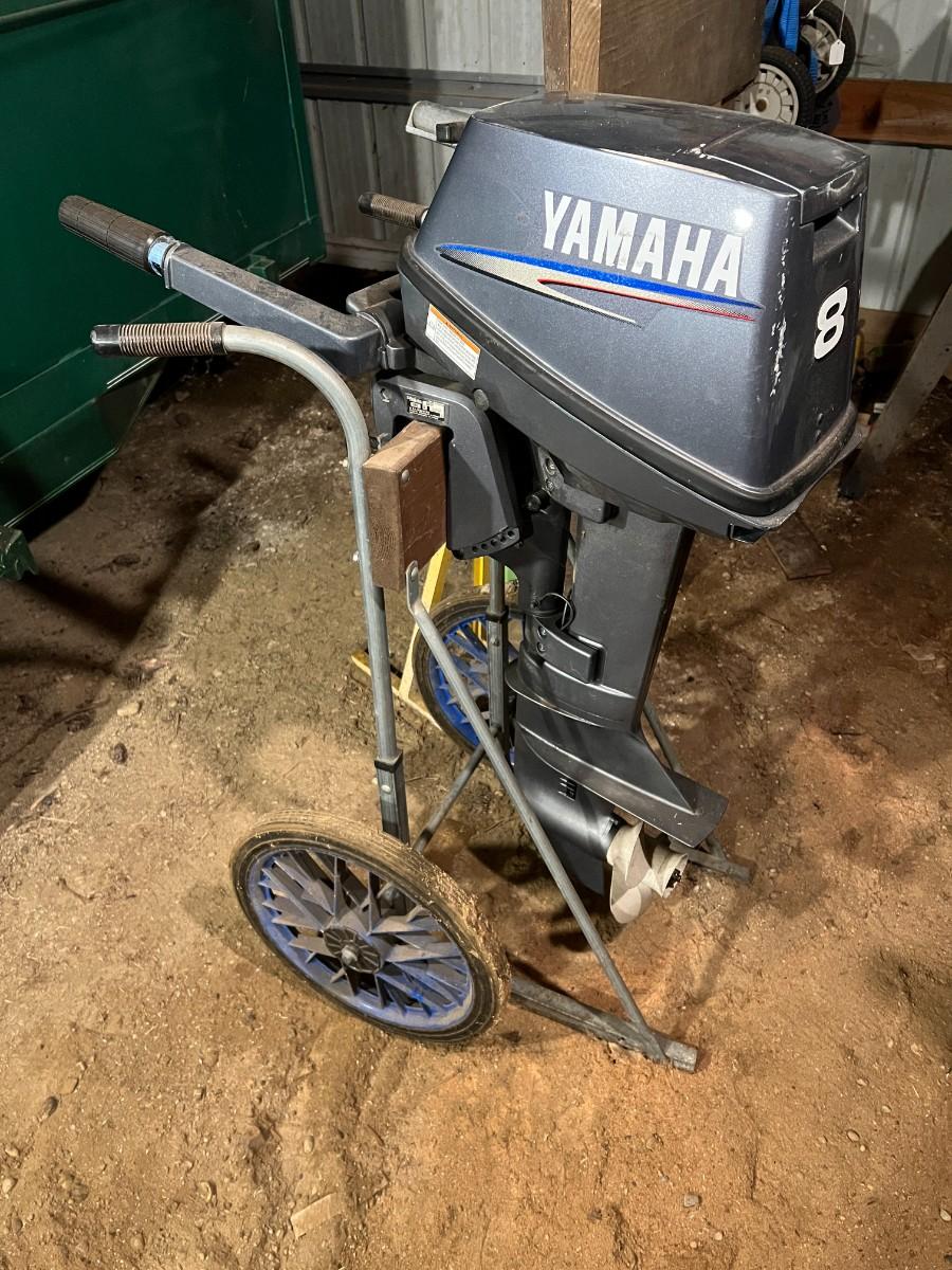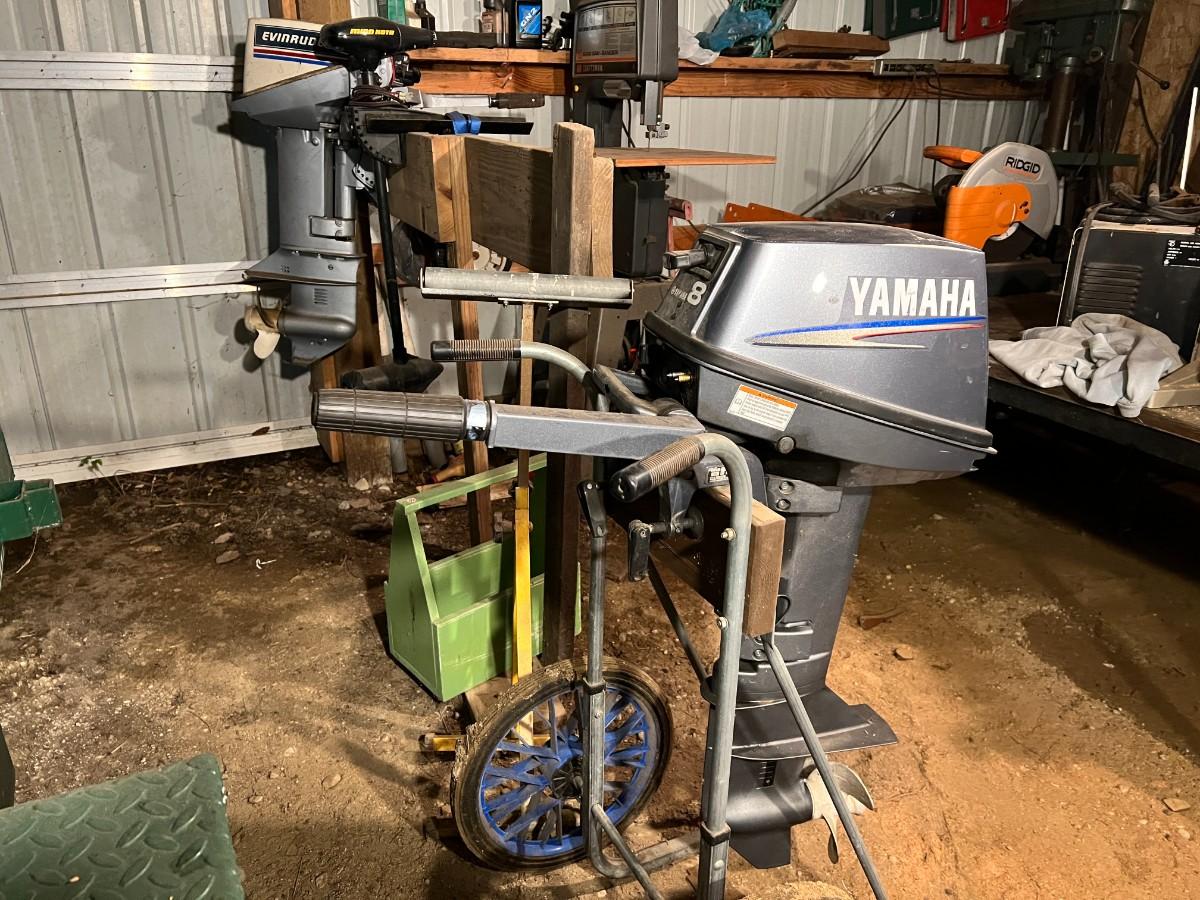 Lot of 3 Used Boat Propeller Engines, including a Yamaha 8 hp outboard engine, Minn Kota, and an Evinrude 9 hp. From a Redmond estate where the owner maintained his equipment very well, however we have not started these engines ourselves. They are sold as-is, where-is.