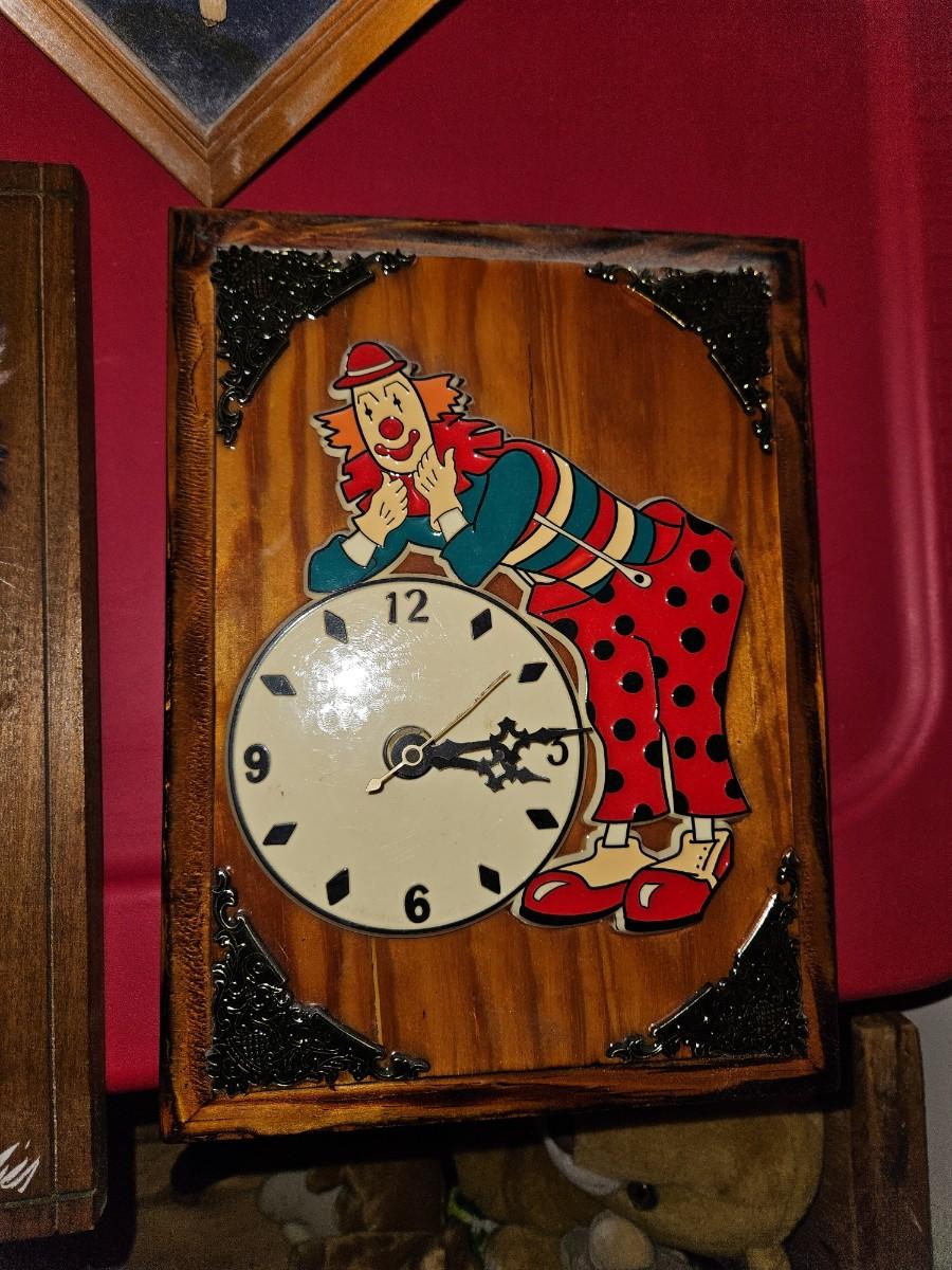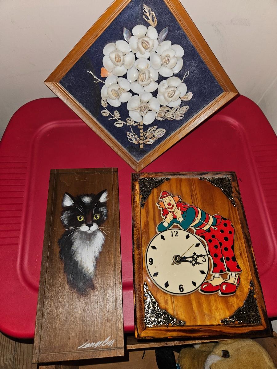 Lot of 3 Vintage 1970's-90's Wall Hangings Including Clown Clock