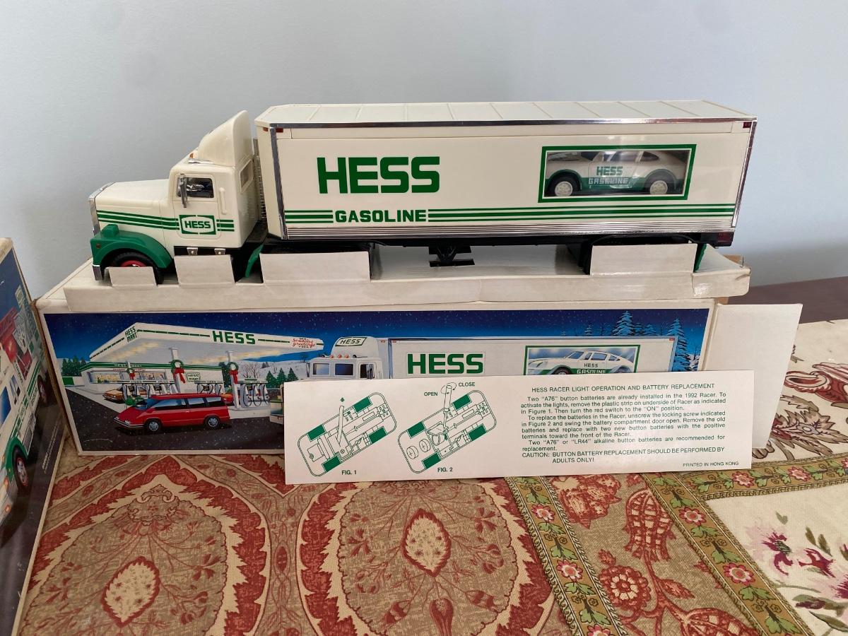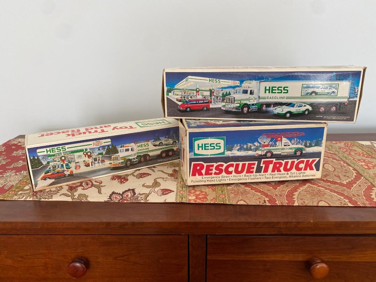 Lot of three Hess trucks, dates are 1991, 1192 and 1994. All with original packaging and never used. One box has slight damamge, but trucks are in new condition.