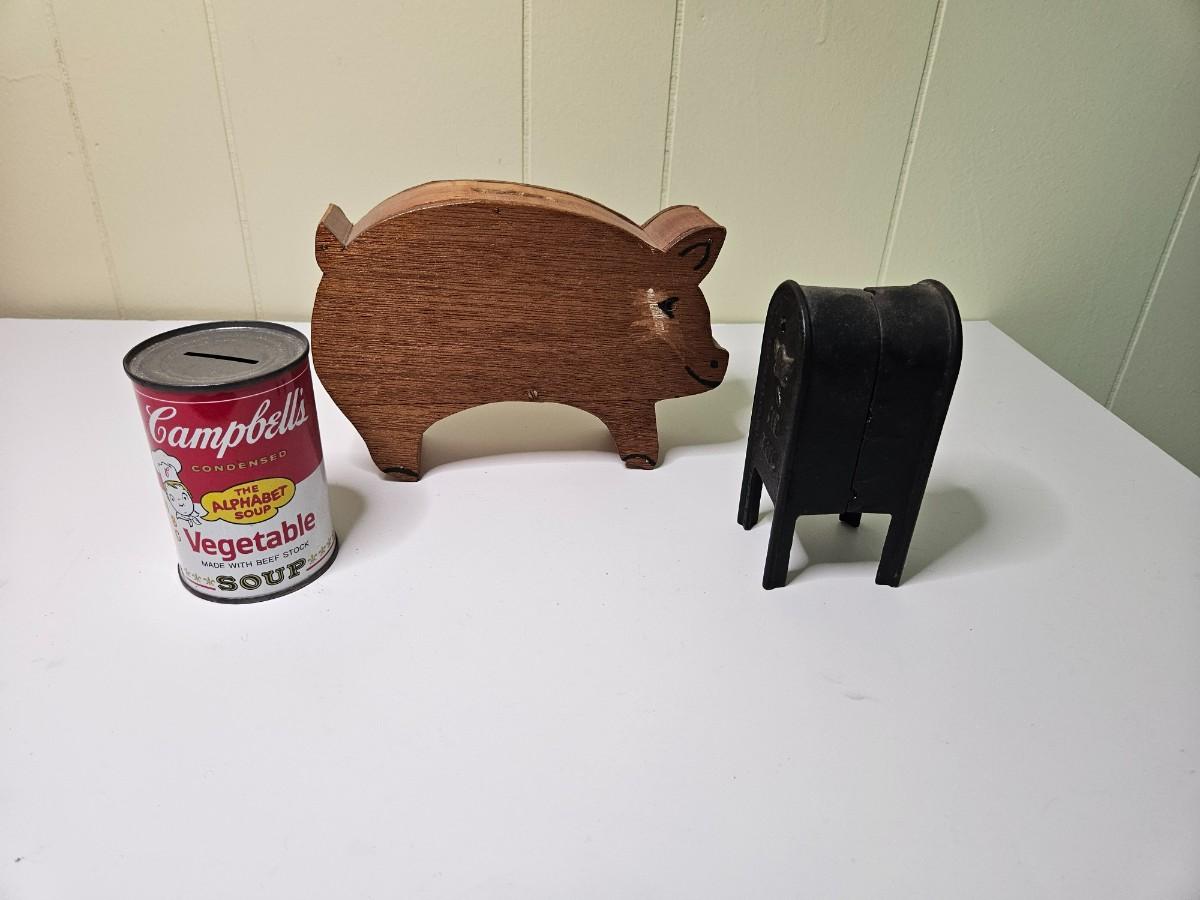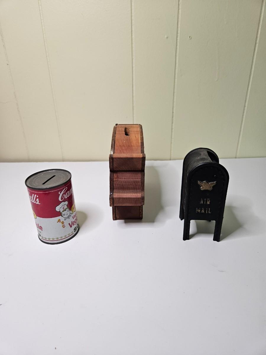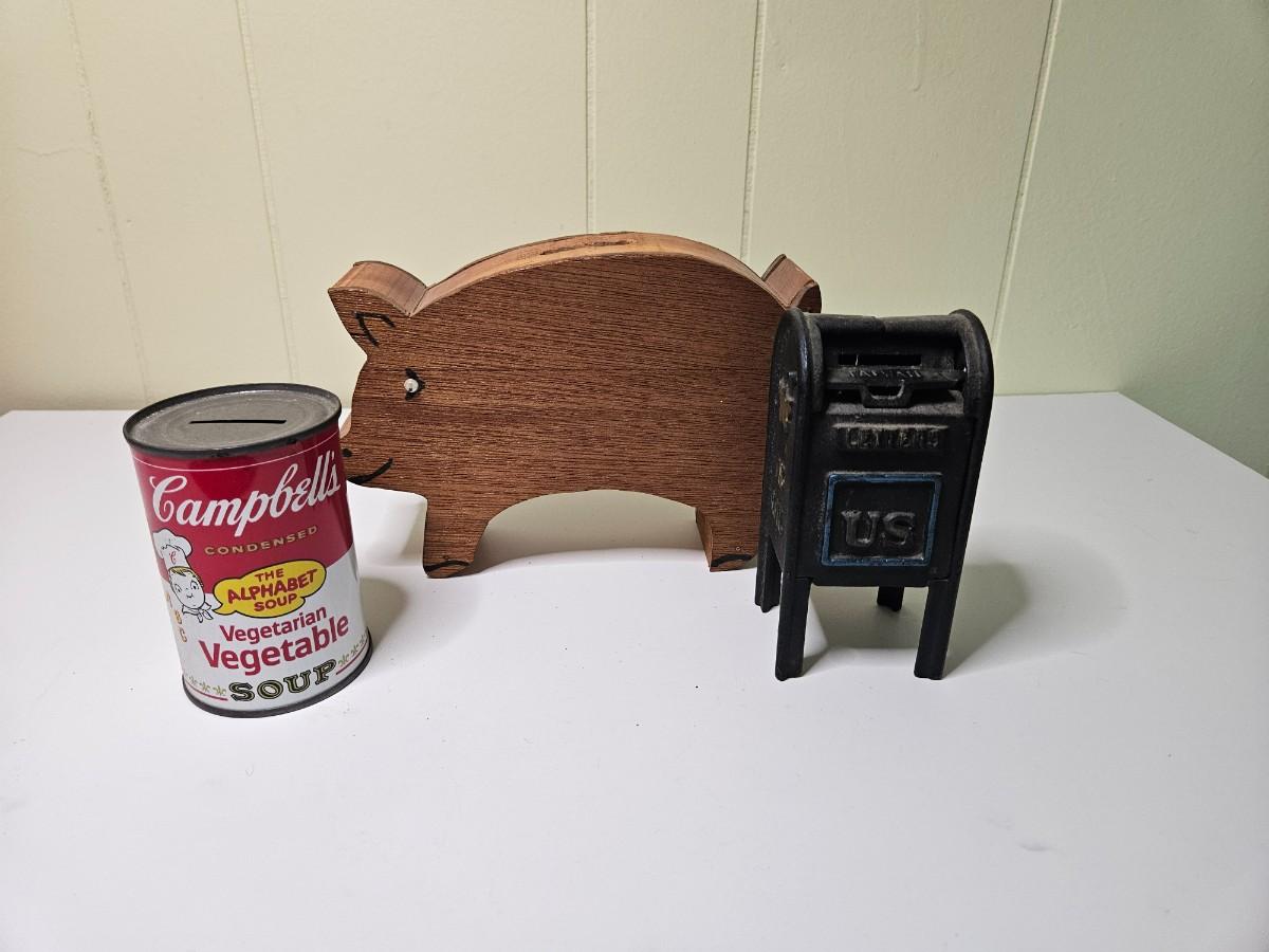 Lot of 3 Vintage Banks Including Iron Mailbox Bank