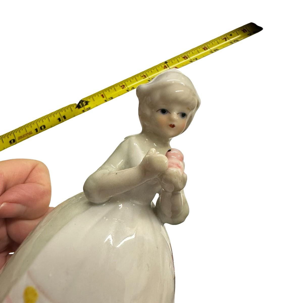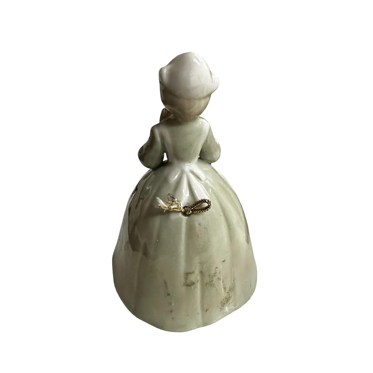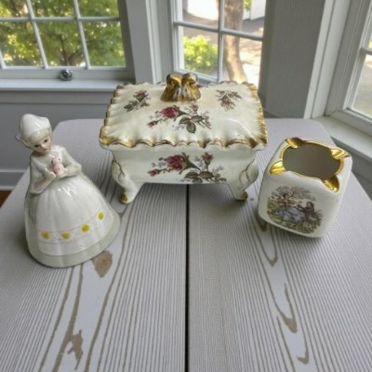 Lot of 3 Vintage Ceramic Pieces- lady is a bell, container with lid, and ashtray
